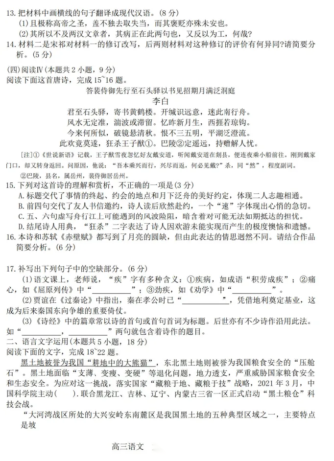 宁夏银川市高三下学期3月教学质量检测(银川一模)语文 宁夏银川市高三下学期3月教学质量检测(银川一模)语文