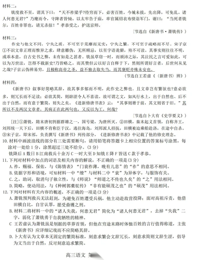 云南红河州、文山州2026届高中毕业生高三下学期语文第三次复习统一检测语文 云南红河州、文山州2026届高中毕业生高三下学期语文第三次复习统一检测语文