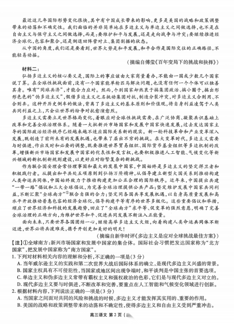 云南红河州、文山州2026届高中毕业生高三下学期语文第三次复习统一检测语文 云南红河州、文山州2026届高中毕业生高三下学期语文第三次复习统一检测语文