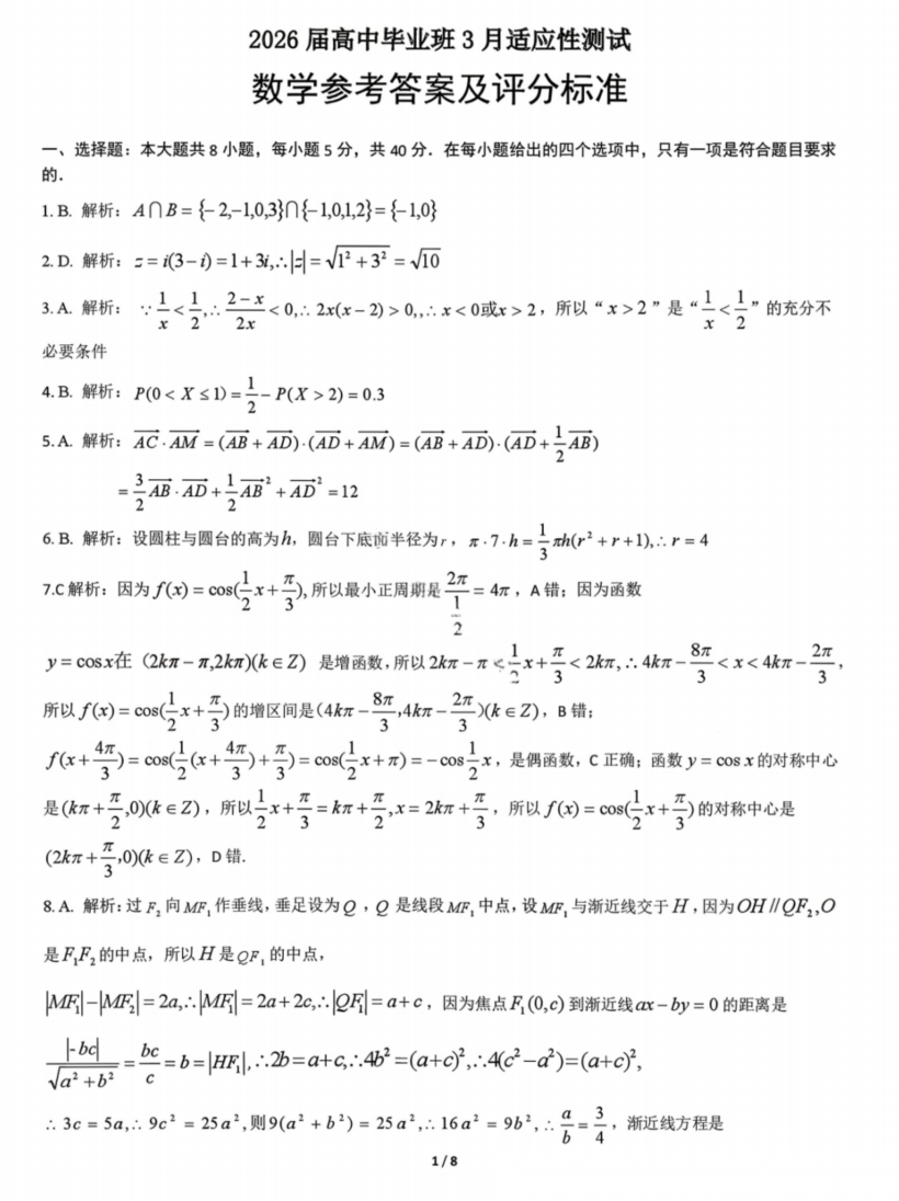 广西八市跨市一模2026届高中毕业班3月跨市适应性测试联考试卷及答案汇总 广西八市跨市一模2026届高中毕业班3月跨市适应性测试联考试卷及答案汇总
