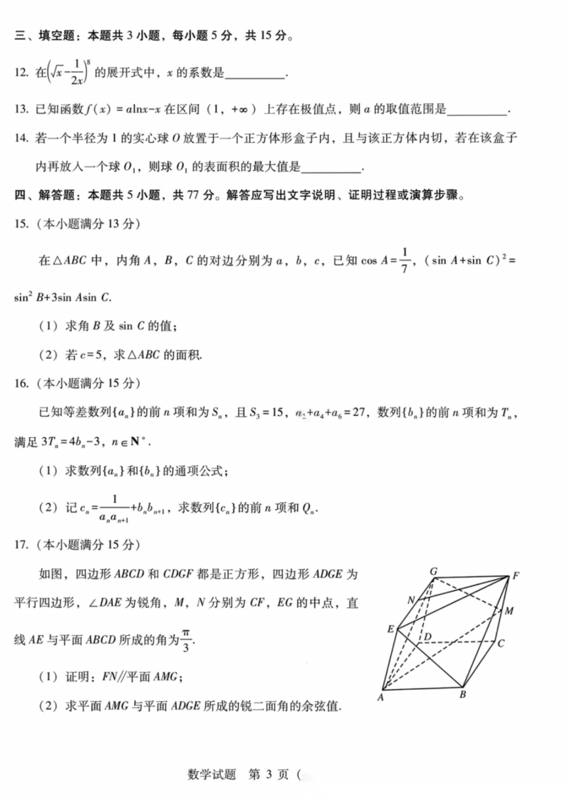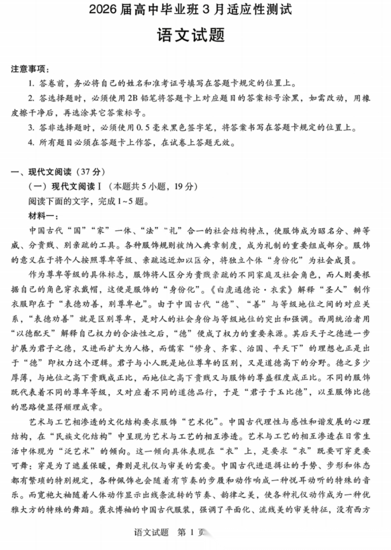 【广西卷】广西壮族自治区八地市2026届高中毕业班3月跨市适应性测试联考(广西八市跨市一模)(3.24-3.26) 数学语文试题卷+答案