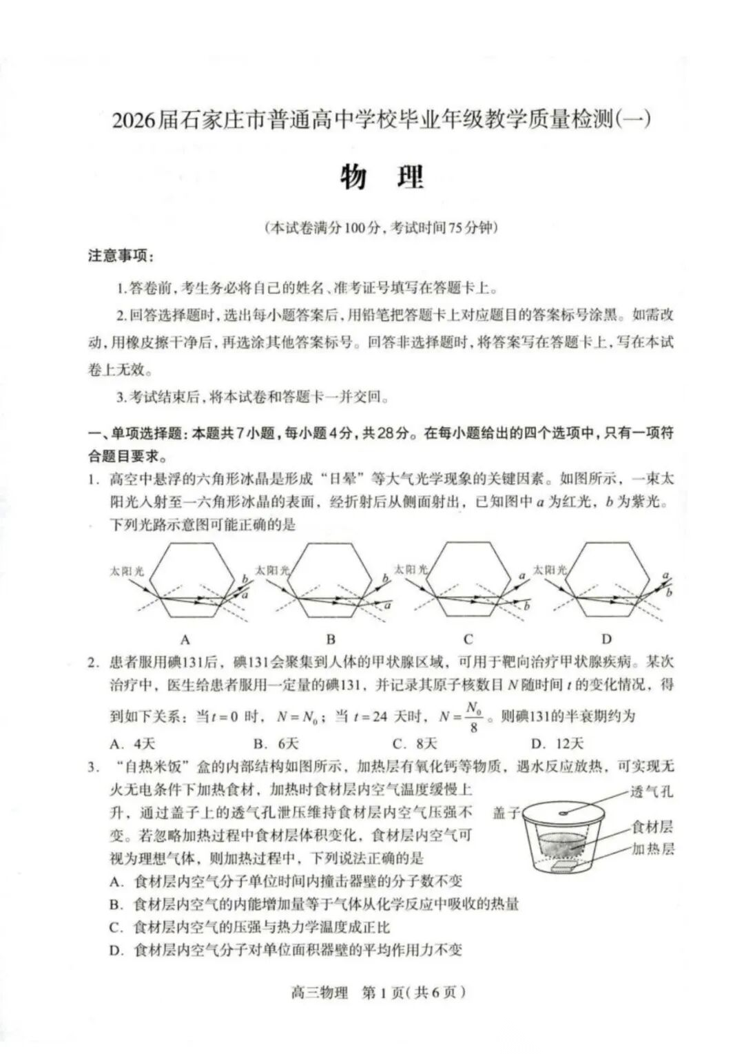 【河北卷】河北省2026届石家庄市普通高中学校毕业年级高三年级教学质量检测(一)(石家庄一模)(3.23-3.25)数学物理英语语文历史试题卷+答案 【河北卷】河北省2026届石家庄市普通高中学校毕业年级高三年级教学质量检测(一)(石家庄一模)(3.23-3.25)数学...
