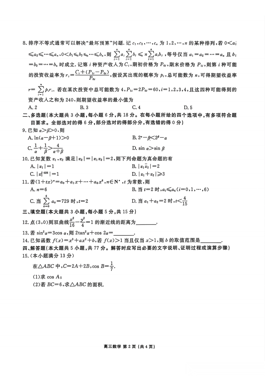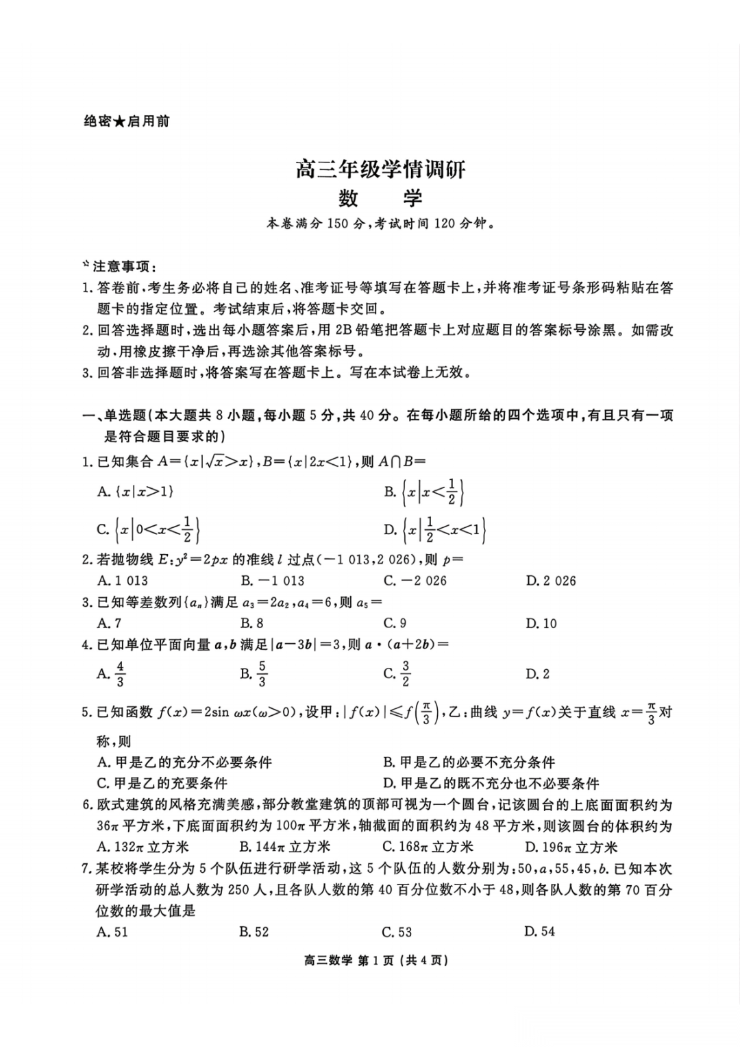 山东师范大学附属中学2025-2026学年高三下学期3月阶段检测 山东师范大学附属中学2025-2026学年高三下学期3月阶段检测