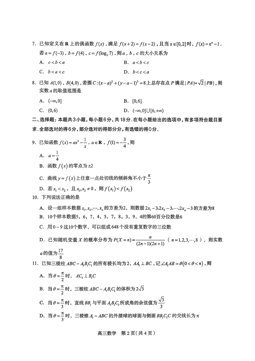 山东师范大学附属中学2025-2026学年高三下学期3月阶段检测 山东师范大学附属中学2025-2026学年高三下学期3月阶段检测
