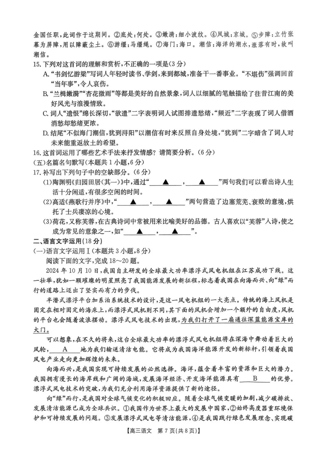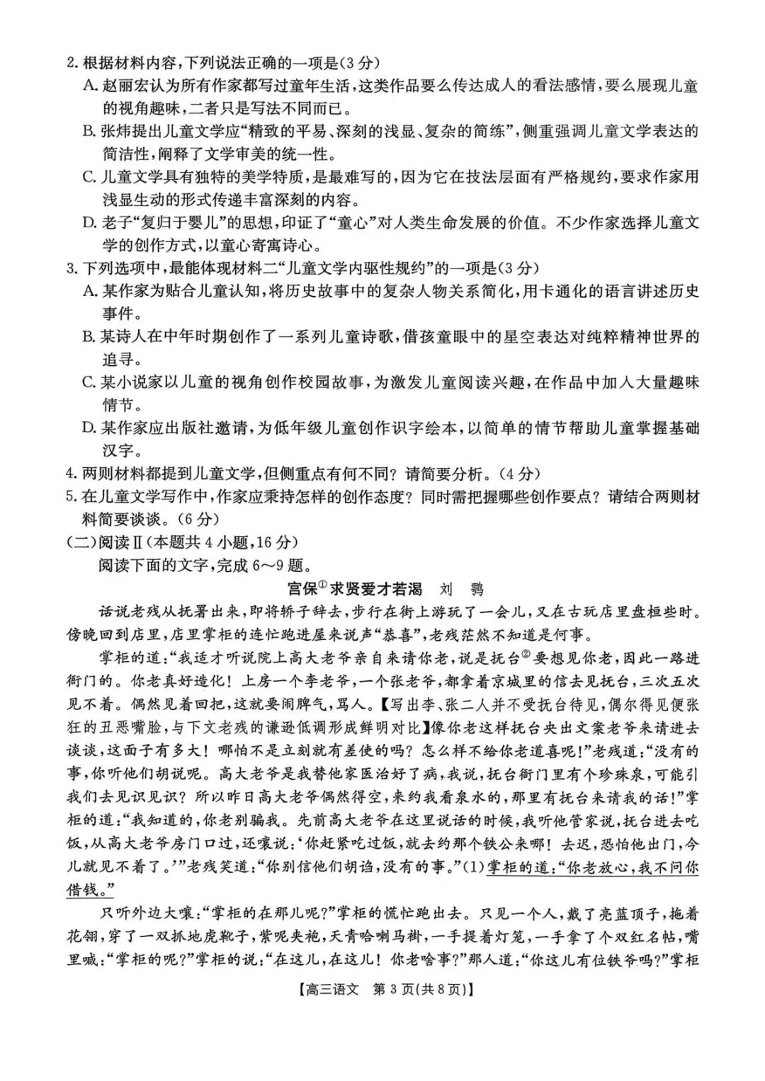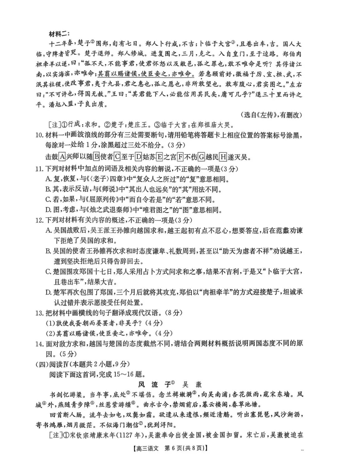 江西省2026届高三3月金太阳学科素养训练语文试题