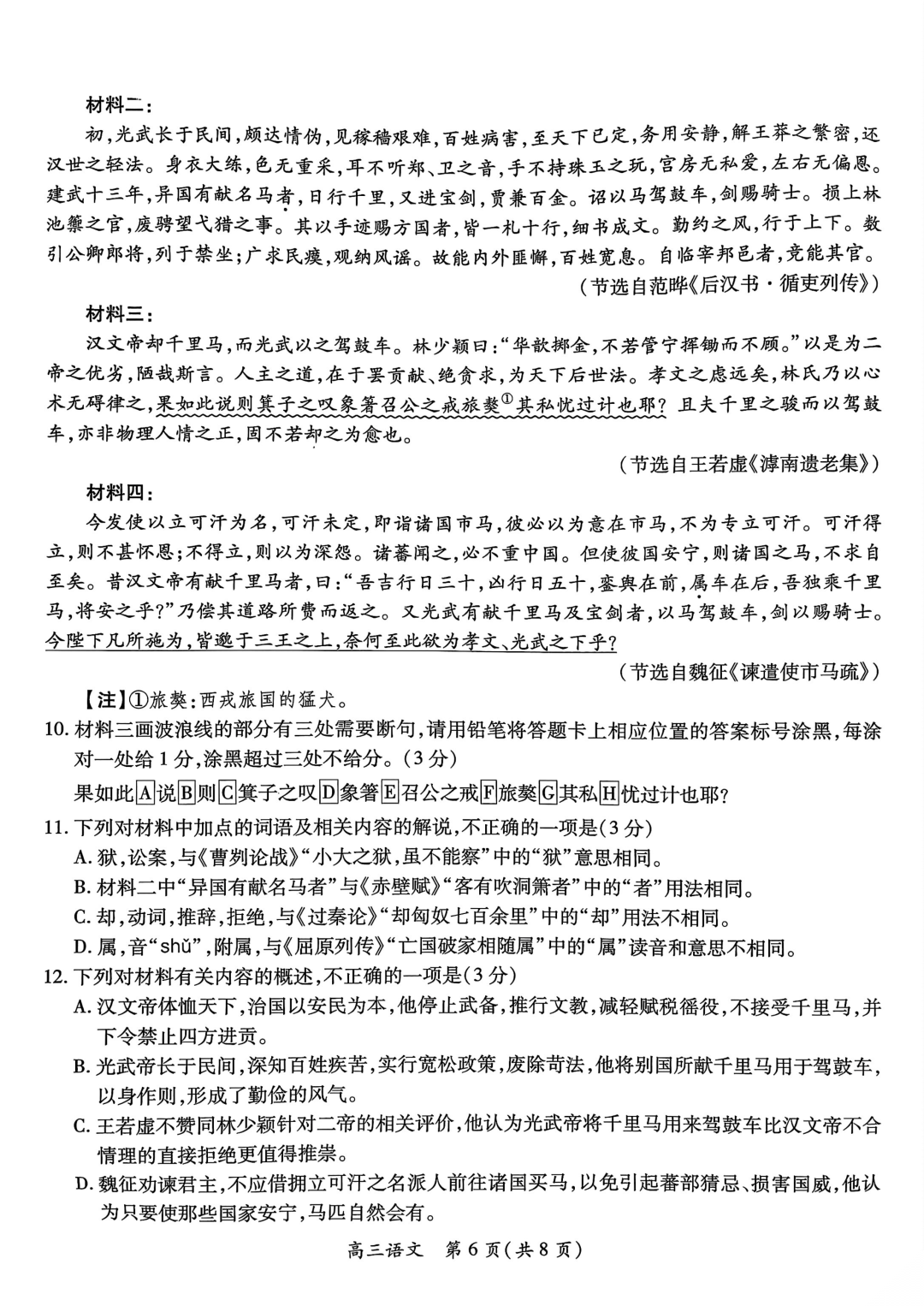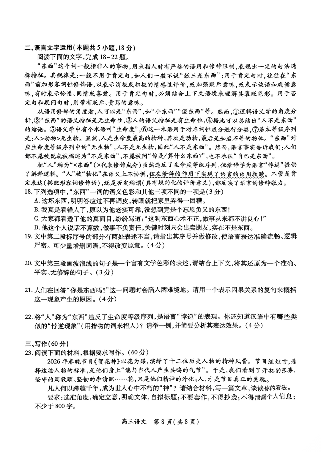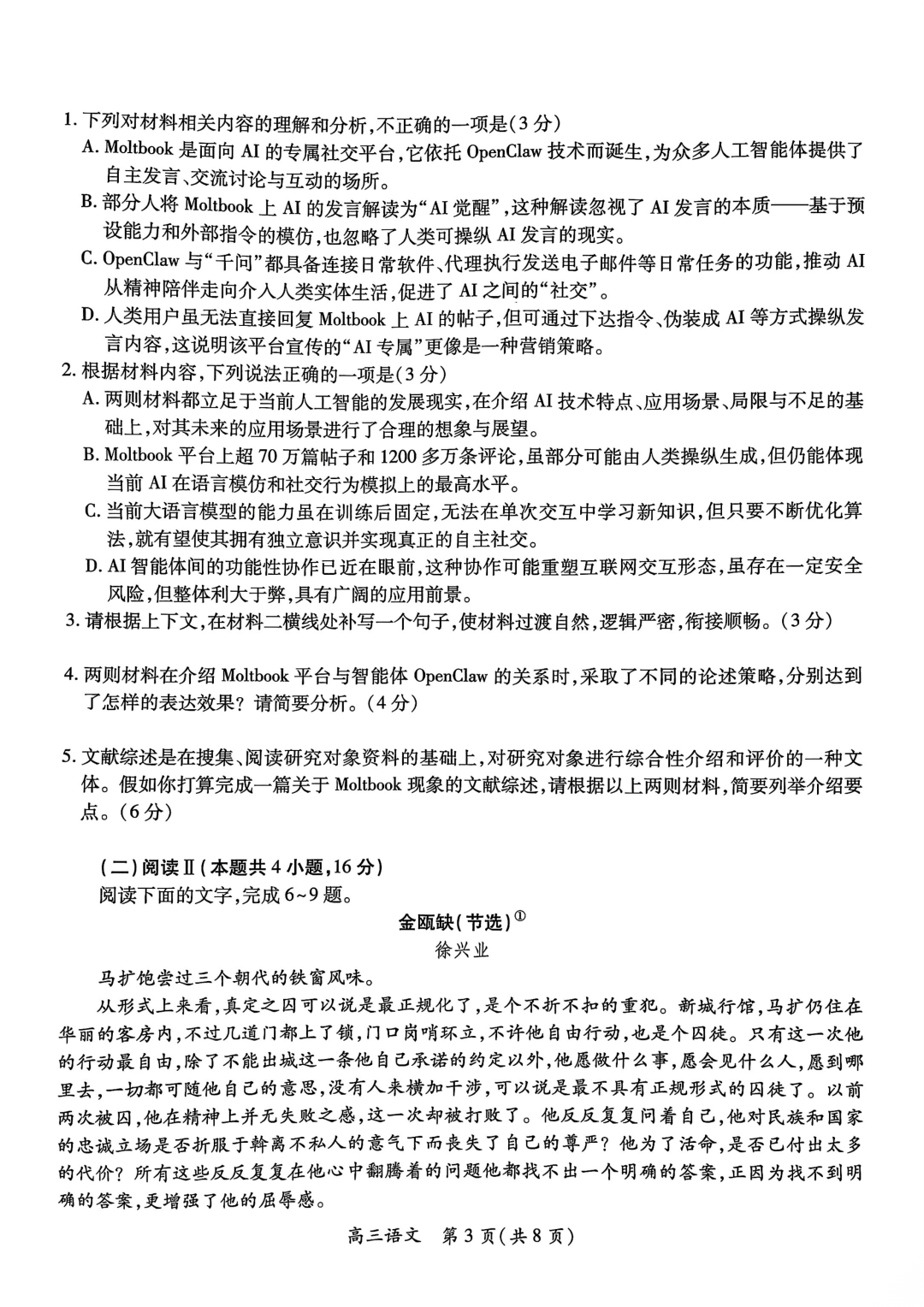 江西省2026届高三3月金太阳学科素养训练语文试题 江西省2026届高三3月金太阳学科素养训练语文试题