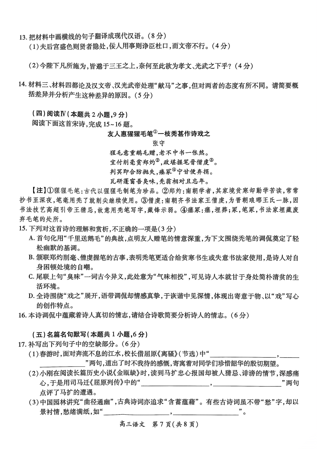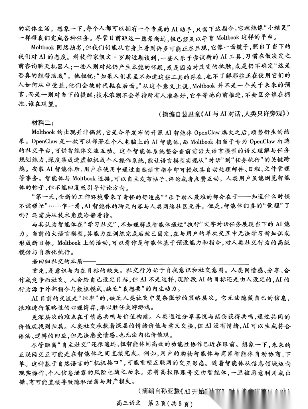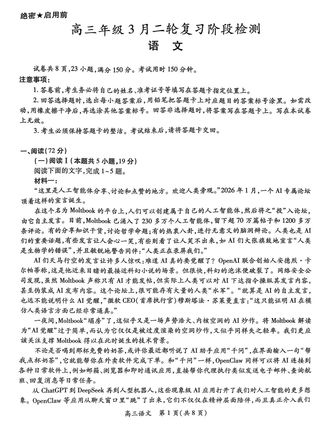 江西省2026届高三3月金太阳学科素养训练语文试题 江西省2026届高三3月金太阳学科素养训练语文试题