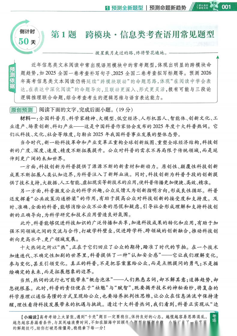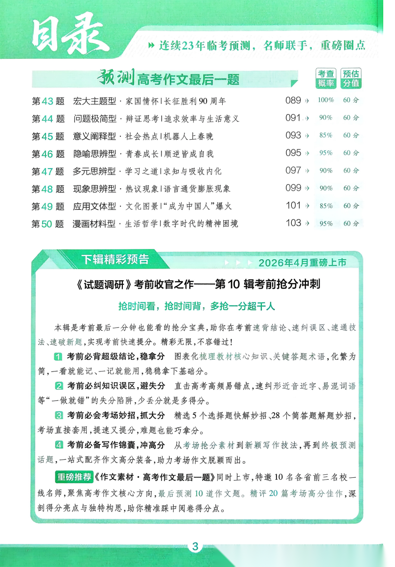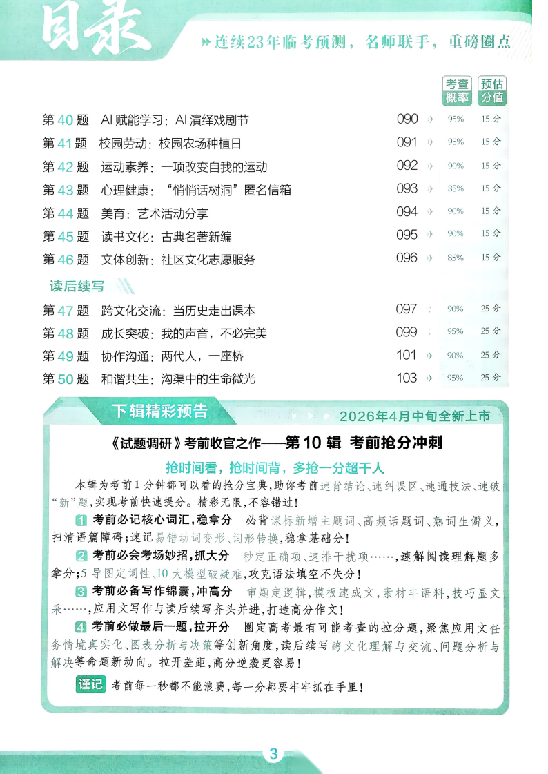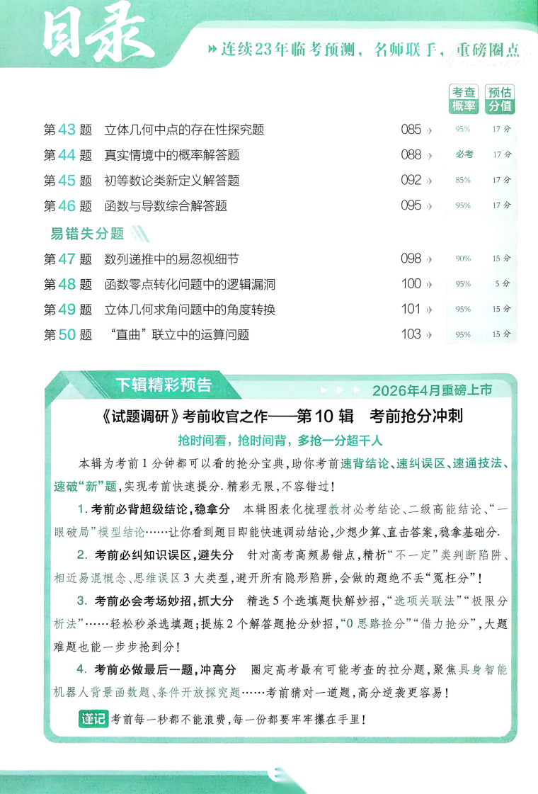 【试题调研】【考前50天】20263月《天星教育•试题调研》(第9辑)(2026年高考考前50天50题)最新出版(9科全)(完整版)