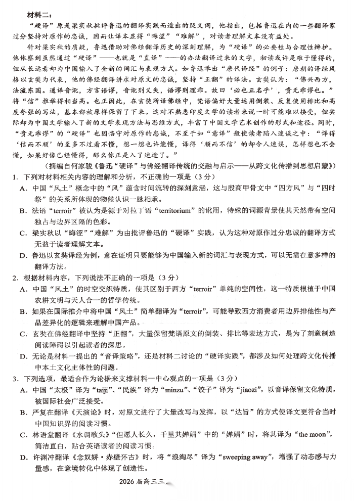 【多考区卷】【百师联盟卷】百师联盟2026 届高三年级二轮复习联考(一)(百师一模)(3.25-3.26) 数学物理化学语文历史试题卷+答案 【多考区卷】【百师联盟卷】百师联盟2026 届高三年级二轮复习联考(一)(百师一模)(3.25-3.26) 数学物理...