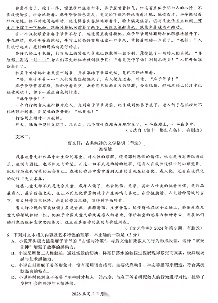 【西北卷】【山西卷】山西省太原市2026年高三年级模拟考试(一)(太原一模)(3.25-3.27) 数学语文试题卷+答案 【西北卷】【山西卷】山西省太原市2026年高三年级模拟考试(一)(太原一模)(3.25-3.27) ...
