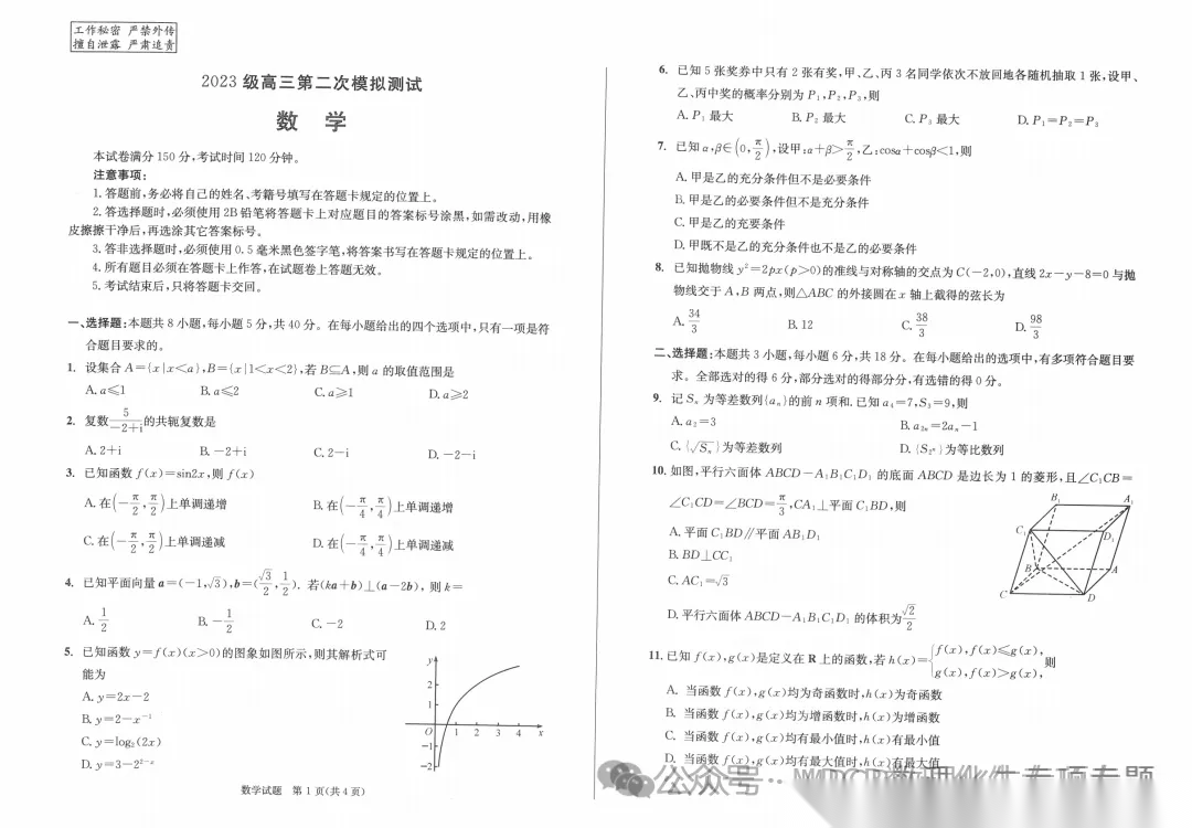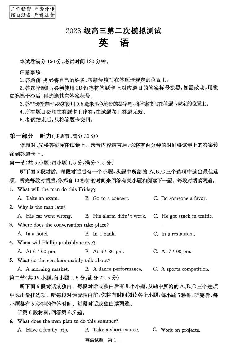 【四川卷】四川省成都市2023级(2026届)高三年级第二次模拟测试(成都二诊)(3.23-3.25) 全科试题卷(含日语)+答题卡+答案