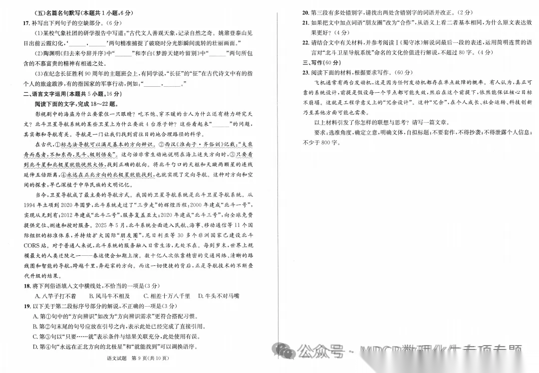 【湖北卷】湖北省十一校2026 届高三年级第二次联考(3.25-3.26) 数学语文试题卷+答案 【湖北卷】湖北省十一校2026 届高三年级第二次联考(3.25-3.26) 数学语文试题卷+答案