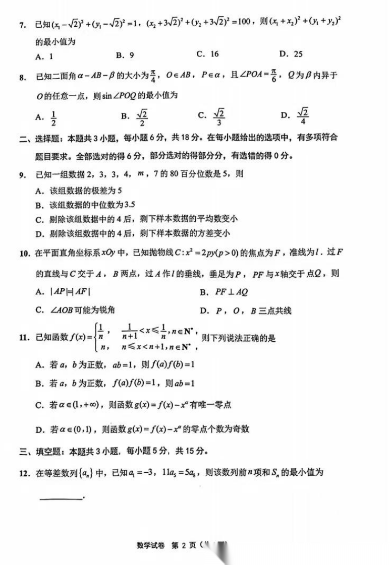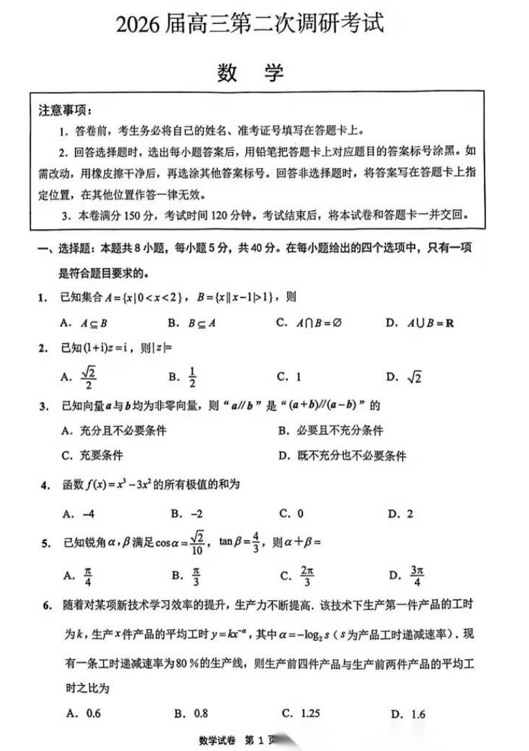 【江苏卷】江苏省苏北南通、徐州、扬州、连云港、淮安、泰州、宿迁七市2026届高三第二次调研考试(二模)(3.25-3.27)数学语文试题卷+答案