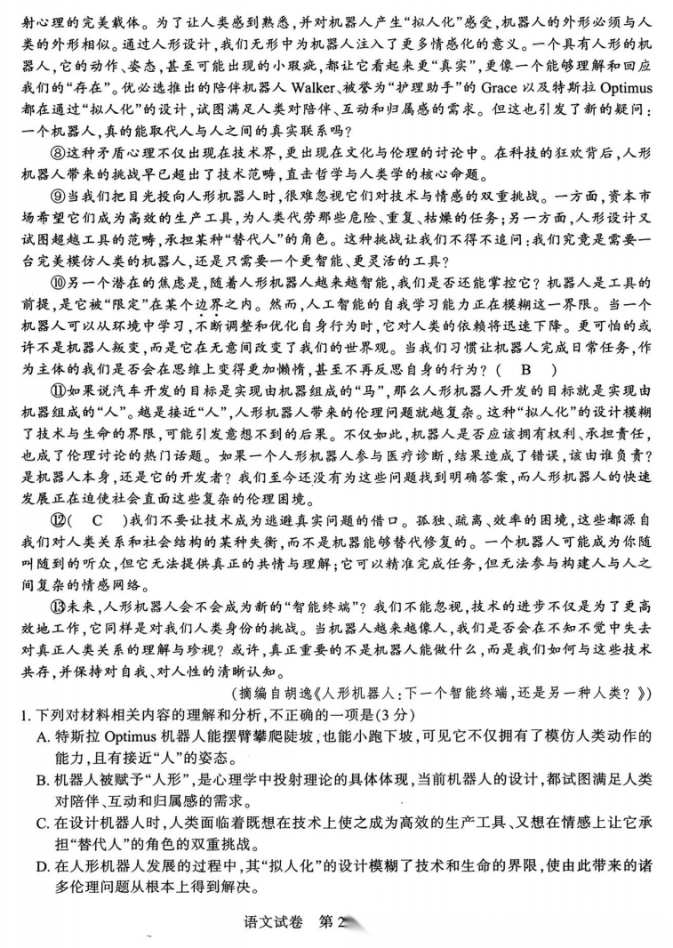【湖北卷】湖北省十一校2026 届高三年级第二次联考(3.25-3.26) 数学语文试题卷+答案 【湖北卷】湖北省十一校2026 届高三年级第二次联考(3.25-3.26) 数学语文试题卷+答案
