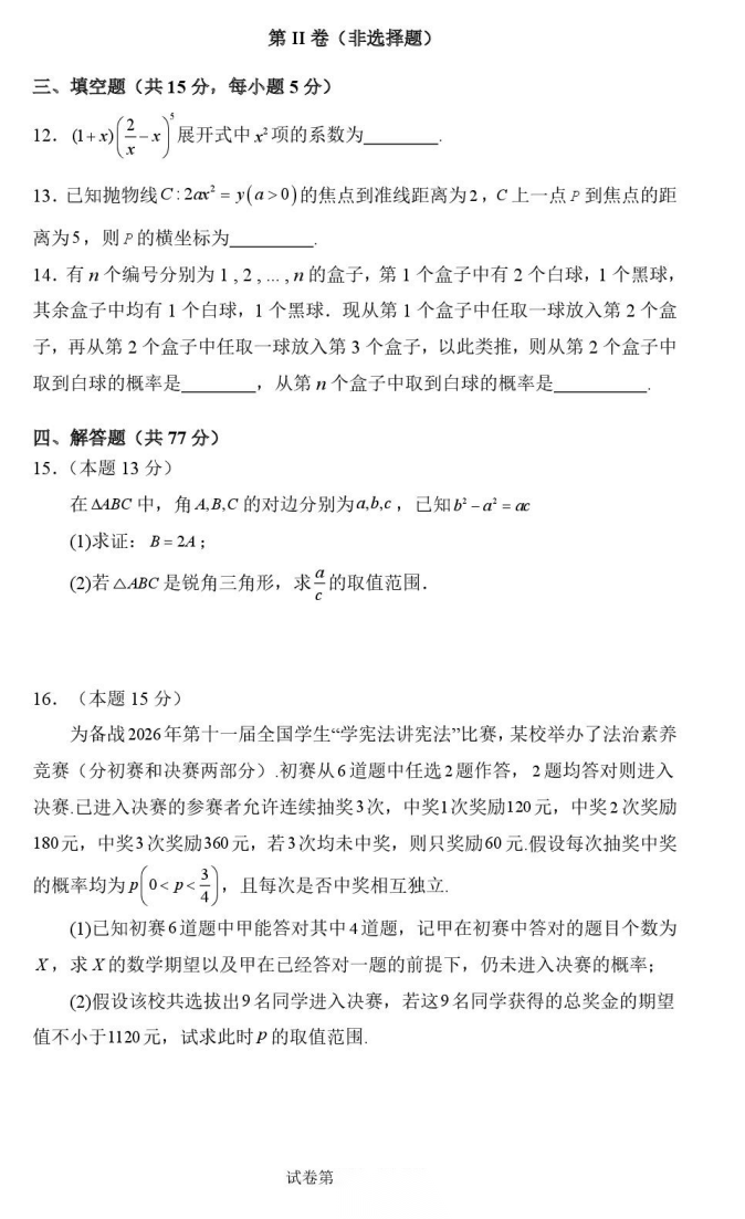【湖北卷】湖北省十一校2026 届高三年级第二次联考(3.25-3.26) 数学语文试题卷+答案 【湖北卷】湖北省十一校2026 届高三年级第二次联考(3.25-3.26) 数学语文试题卷+答案