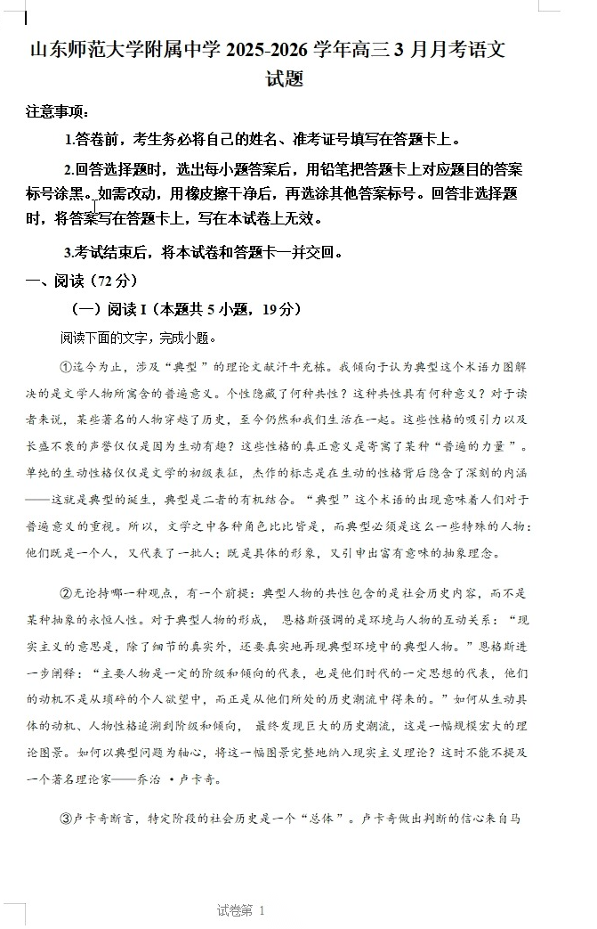 【补齐重发】【百强校】【山东卷】山东省山东师范大学附属中学2026届高三年级3月阶段性检测(3.17-3.18) 全科试题卷(缺生物)+答案
