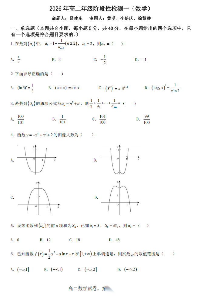 【江苏卷】江苏省苏北南通、徐州、扬州、连云港、淮安、泰州、宿迁七市2026届高三第二次调研考试(二模)(3.25-3.27)数学语文试题卷+答案 【江苏卷】江苏省苏北南通、徐州、扬州、连云港、淮安、泰州、宿迁七市2026届高三第二次调研考试(二模)(3.25-3.2...