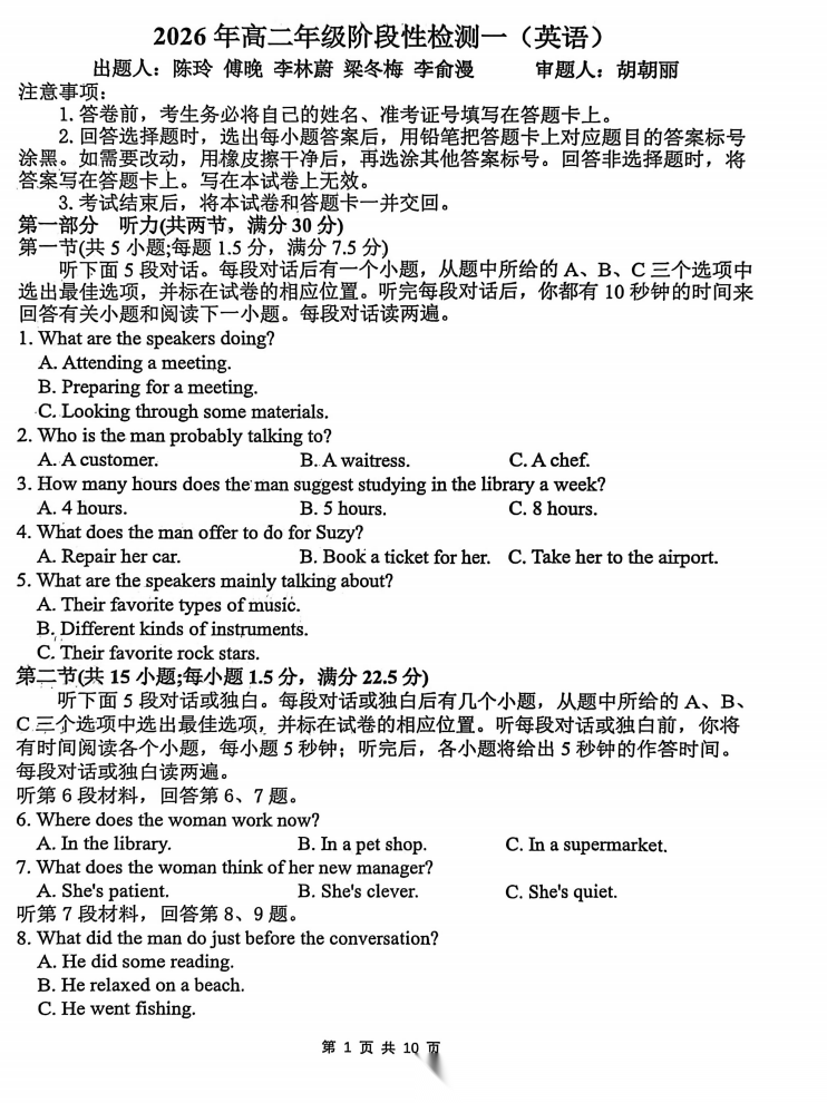 【江西卷】江西省五市十校协作体(旧江西九校协作体)2026届高三年级3月第二次联考(3.23-3.24) 全科试题卷+答案 【江西卷】江西省五市十校协作体(旧江西九校协作体)2026届高三年级3月第二次联考(3.23-3.24) 全...