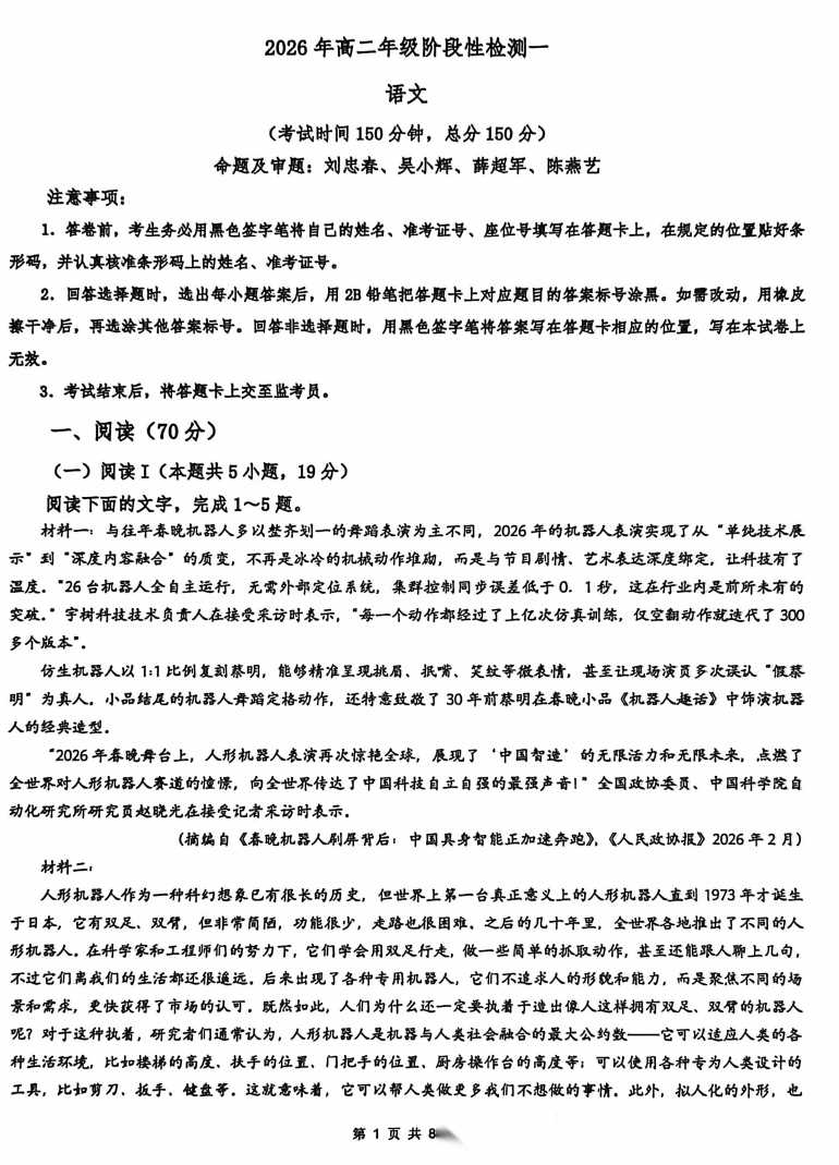 【广西名校】【广西卷】【高二】广西壮族自治区玉林一中2026年高二年级3月阶段性检测一(3.19-3.20) 全科试题卷+答案
