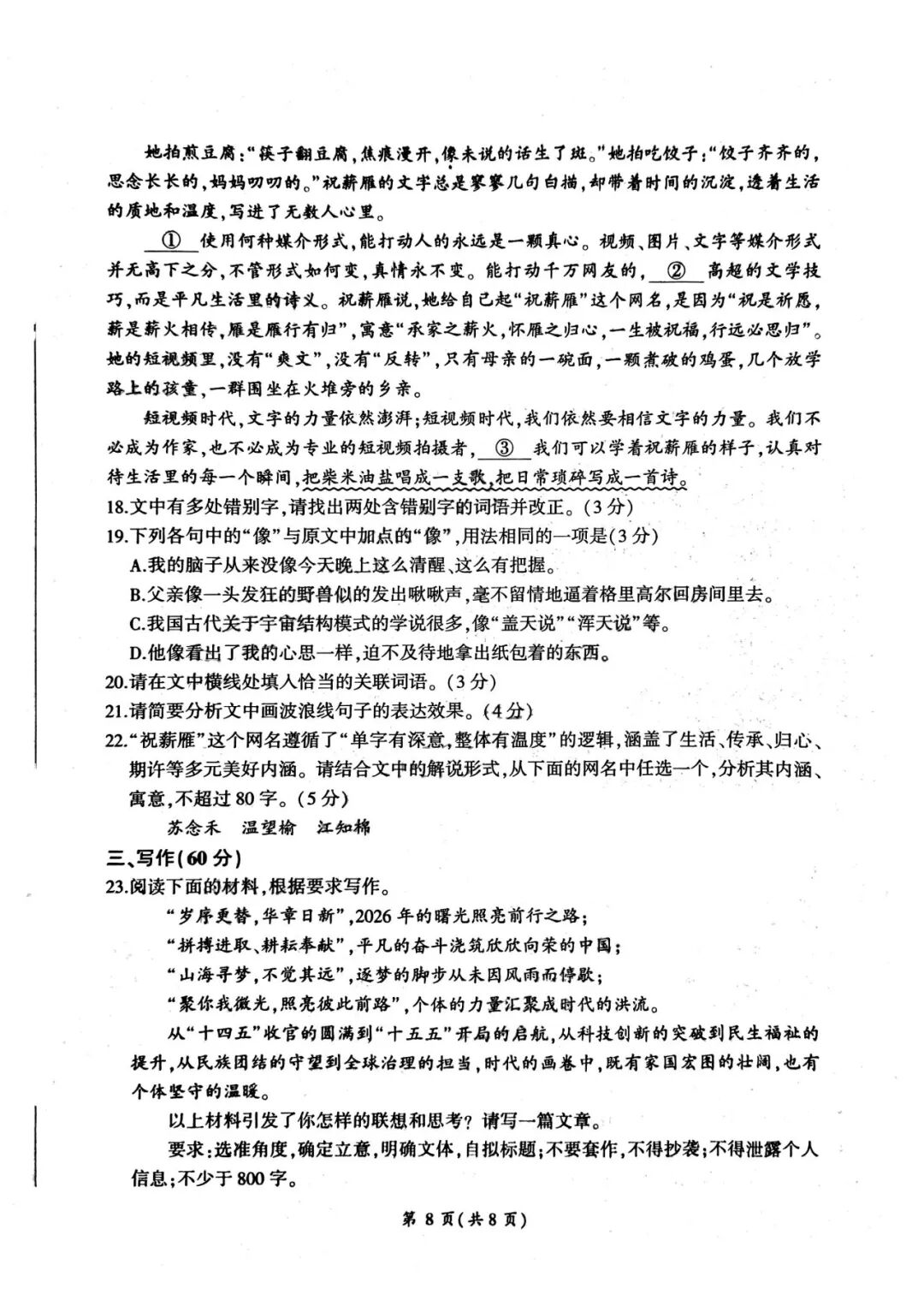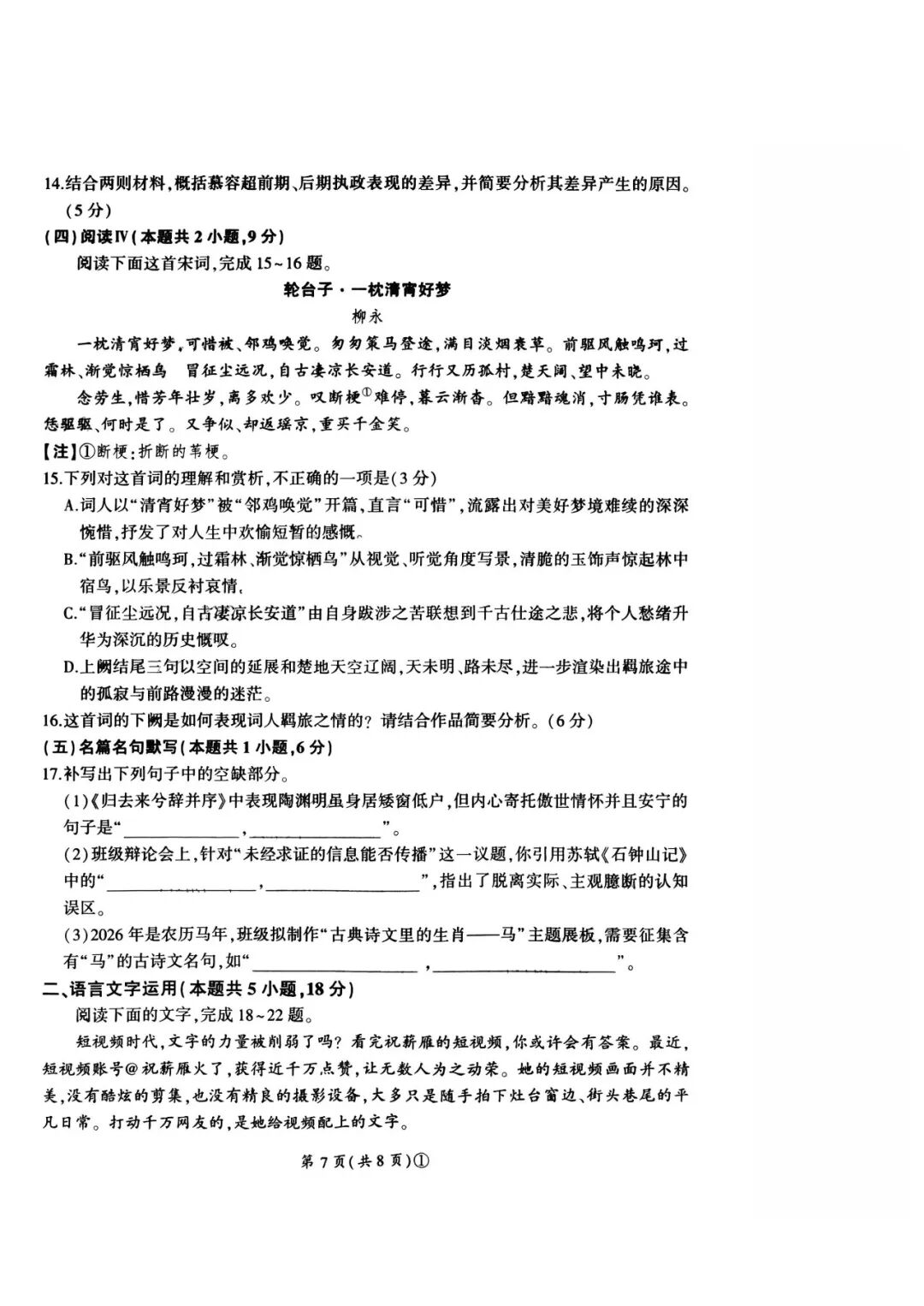 【江苏卷】江苏省苏北南通、徐州、扬州、连云港、淮安、泰州、宿迁七市2026届高三第二次调研考试(二模)(3.25-3.27)数学语文试题卷+答案 【江苏卷】江苏省苏北南通、徐州、扬州、连云港、淮安、泰州、宿迁七市2026届高三第二次调研考试(二模)(3.25-3.2...