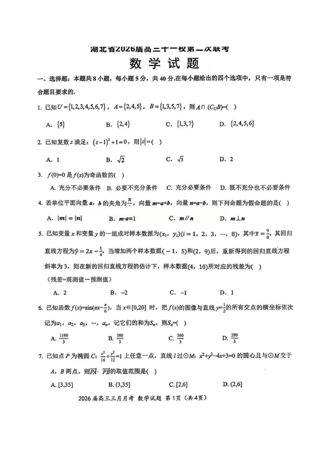 【全科】河北石家庄2026届高三教学质量检测一(石家庄一模) 【全科】河北石家庄2026届高三教学质量检测一(石家庄一模)