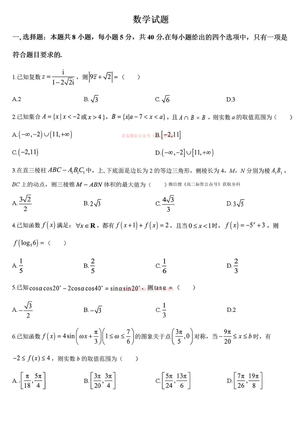 2026高三3月26、27大联考答案 2026高三3月26、27大联考答案