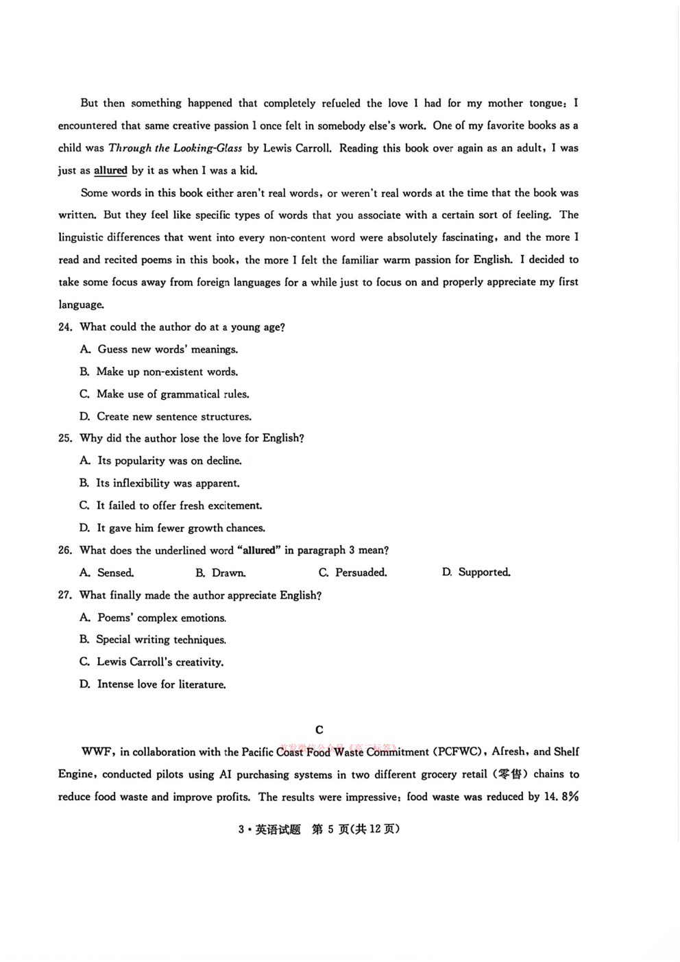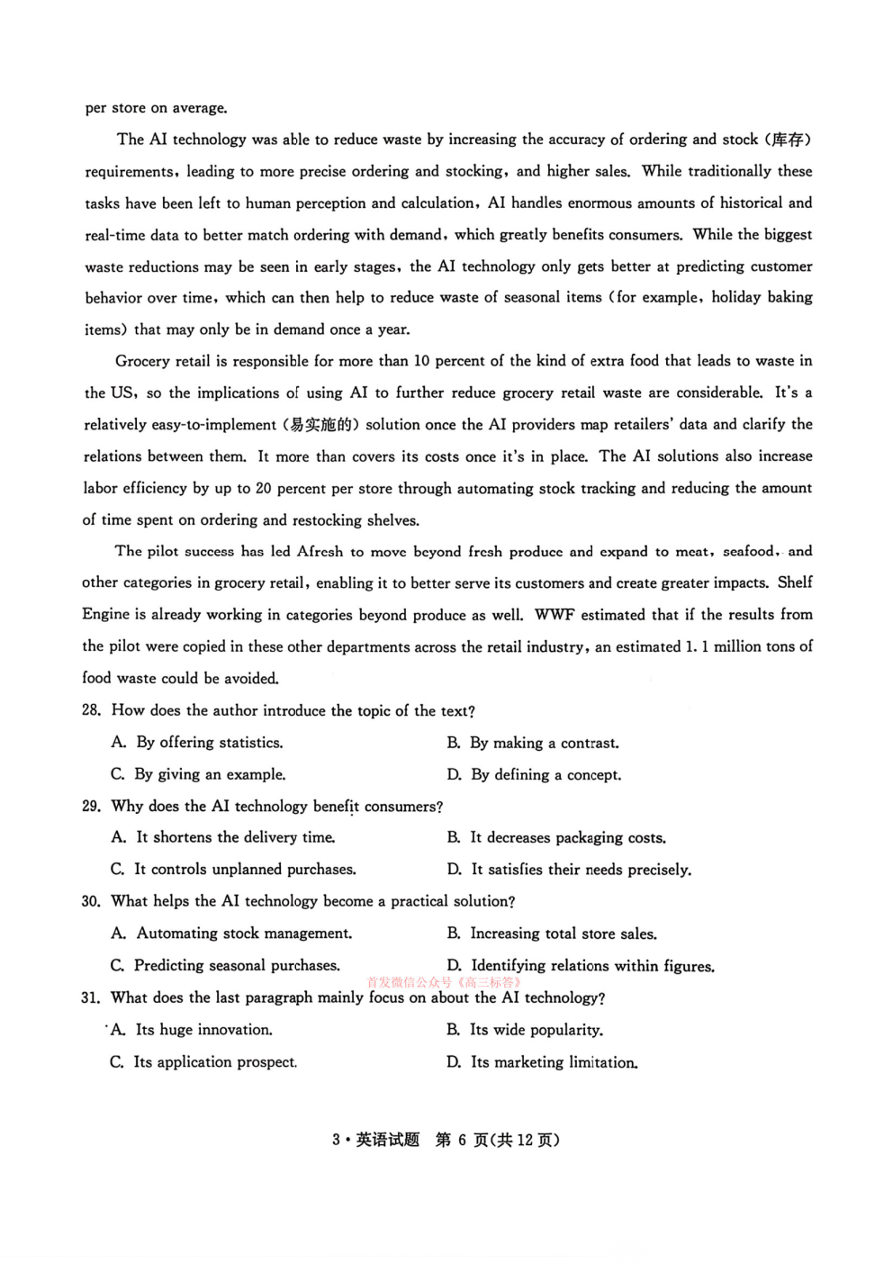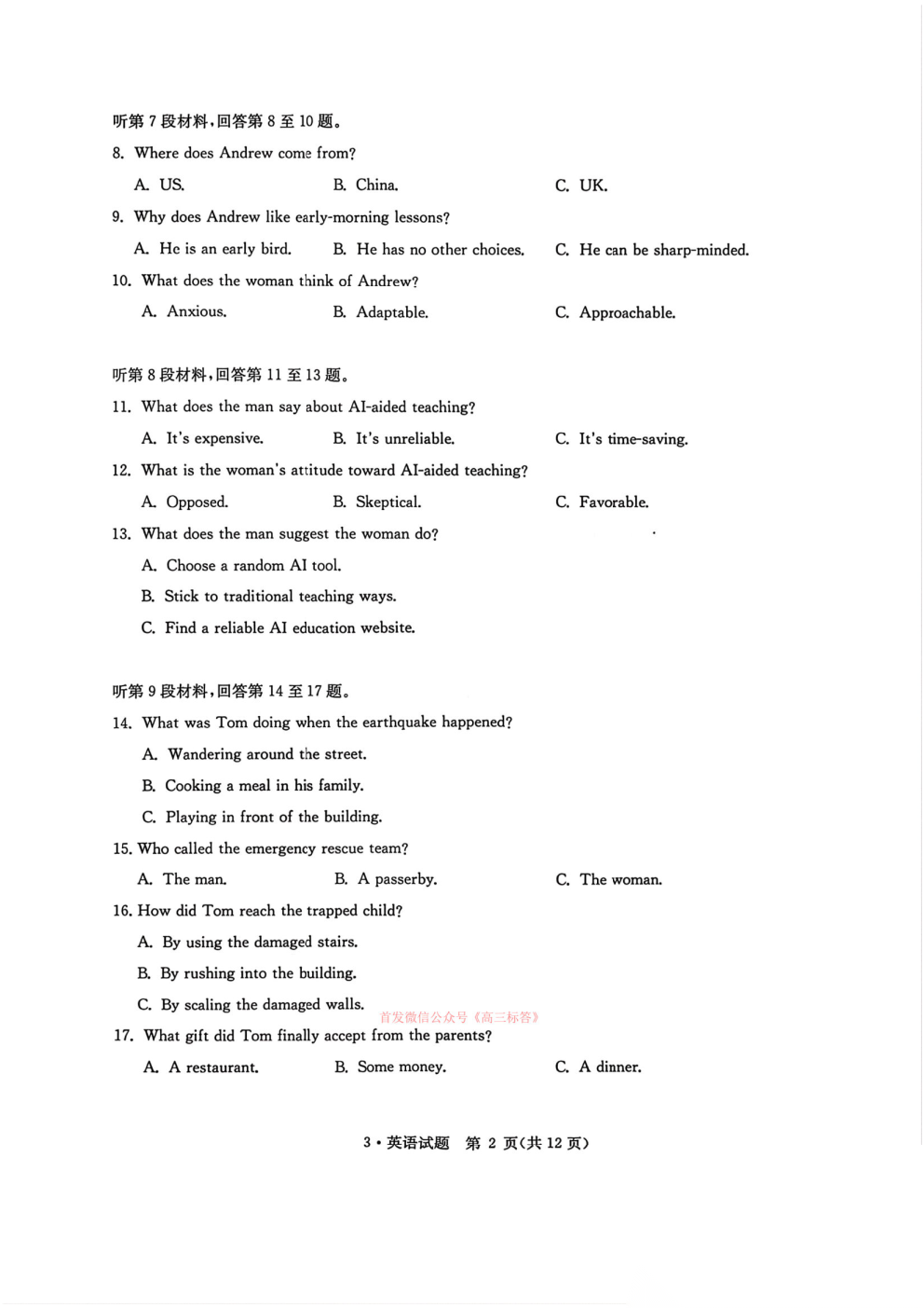 2026高三3月26、27大联考答案 2026高三3月26、27大联考答案