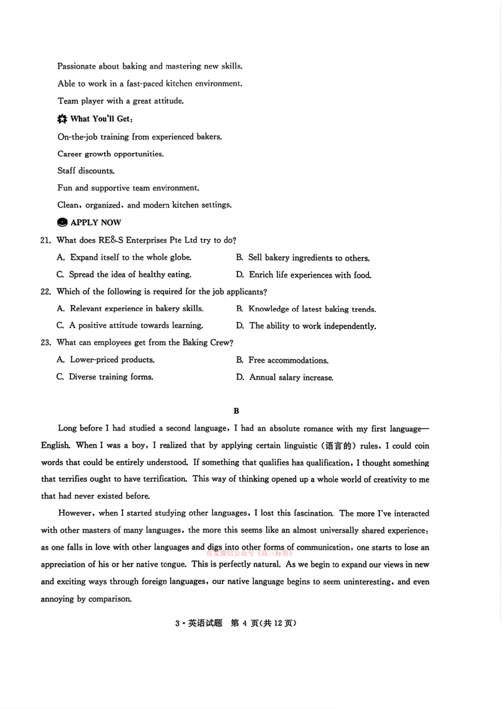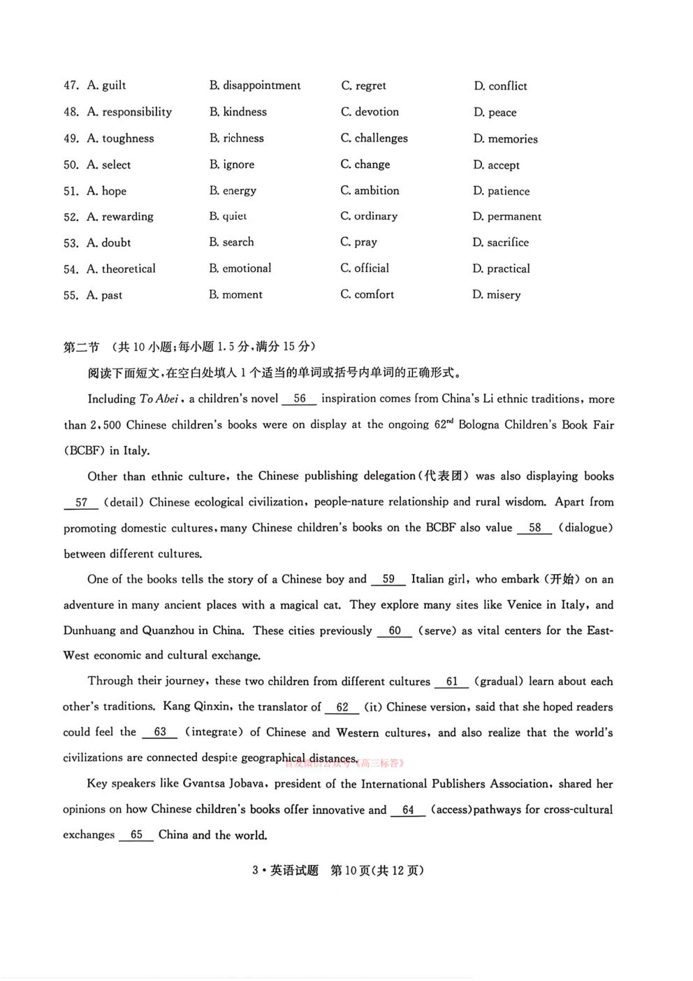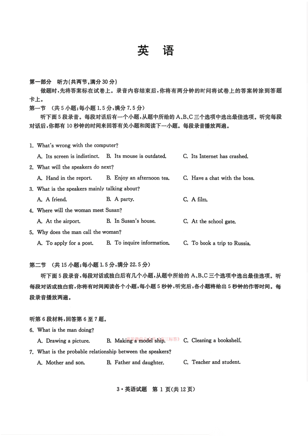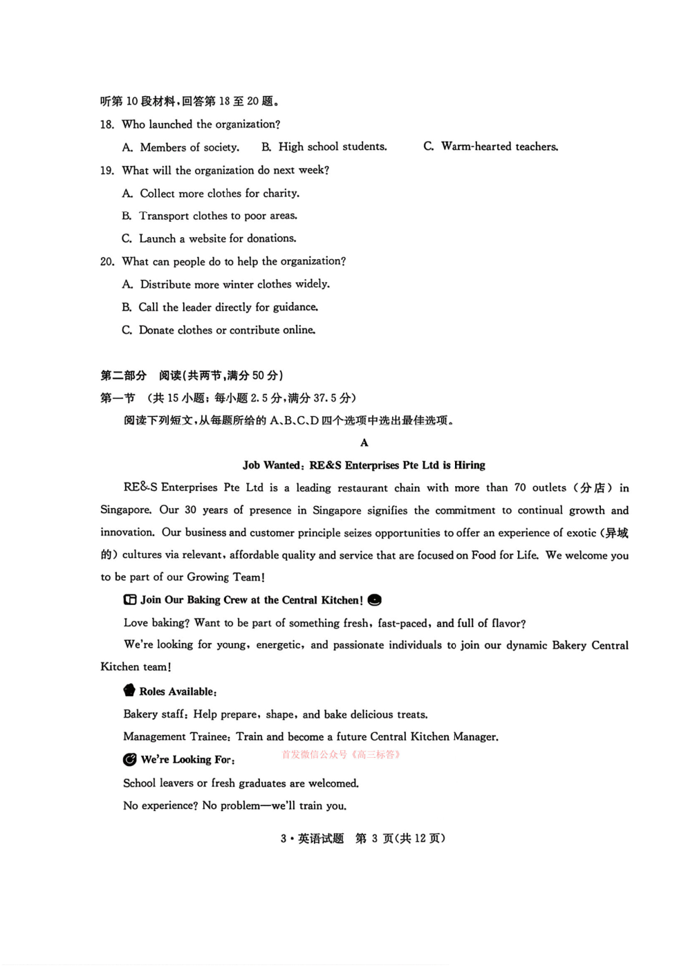 2026高三3月26、27大联考答案 2026高三3月26、27大联考答案