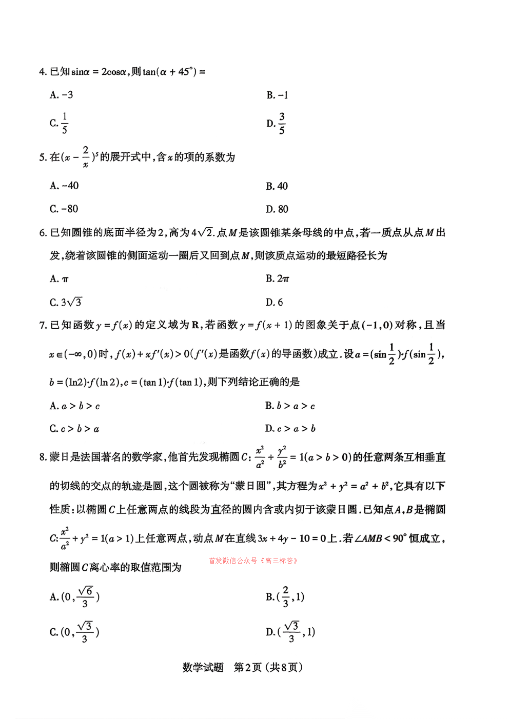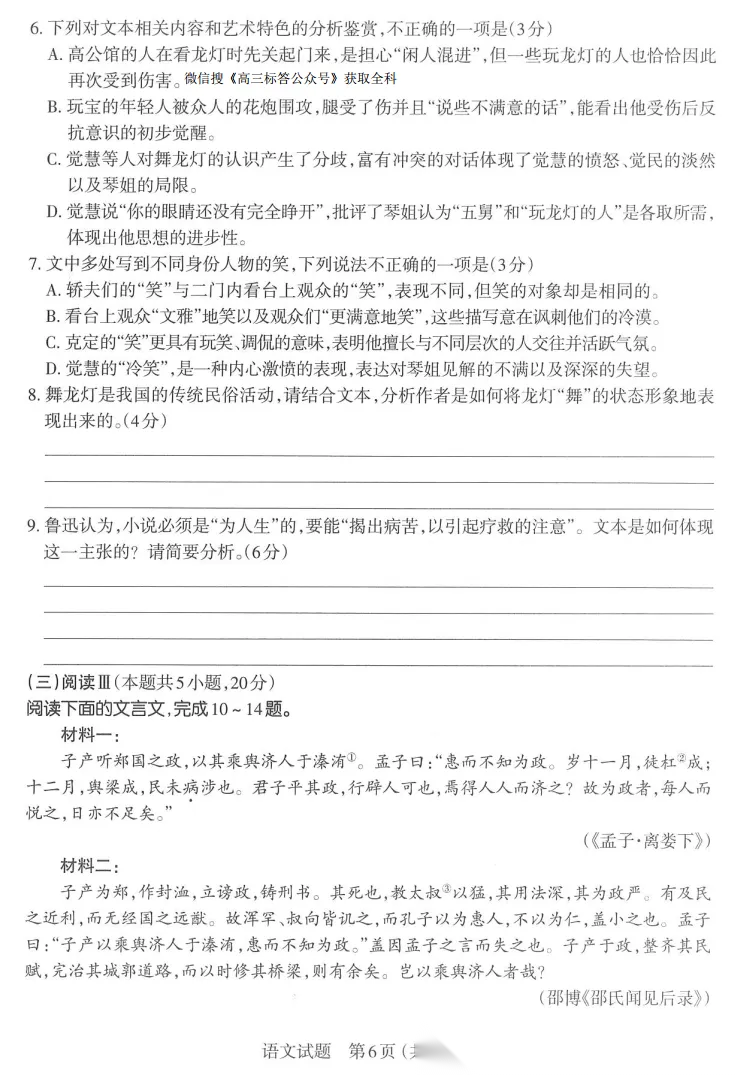 2026华大新高考联盟高三3月联考答案 2026华大新高考联盟高三3月联考答案