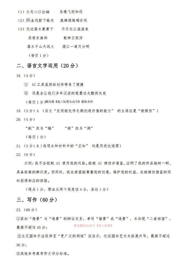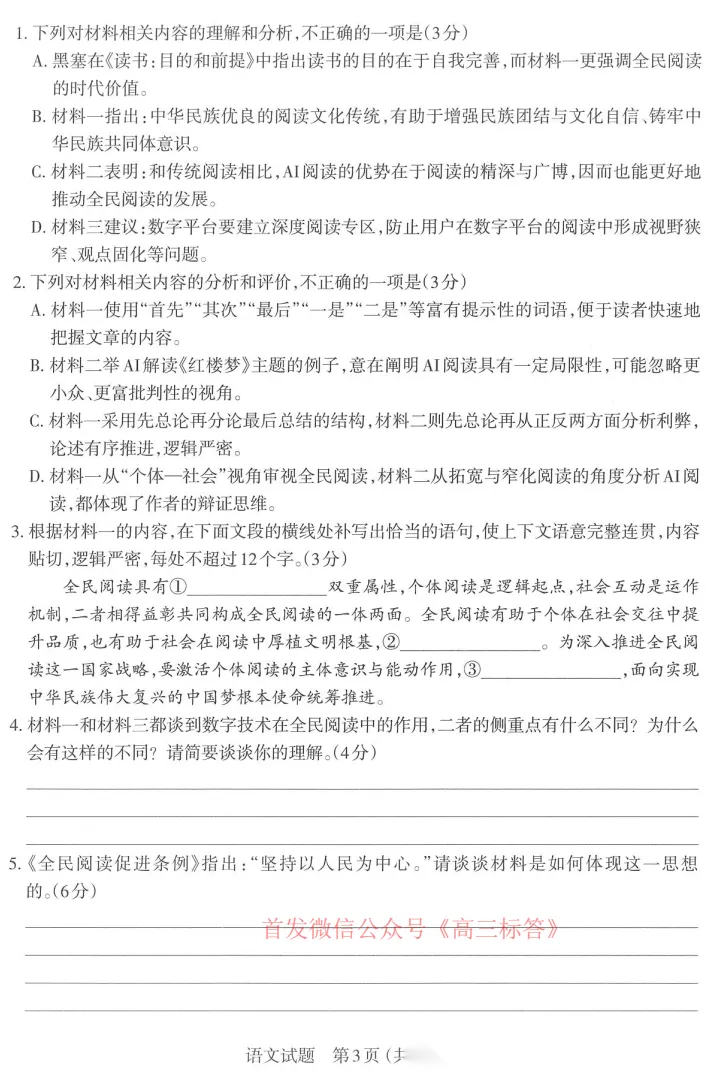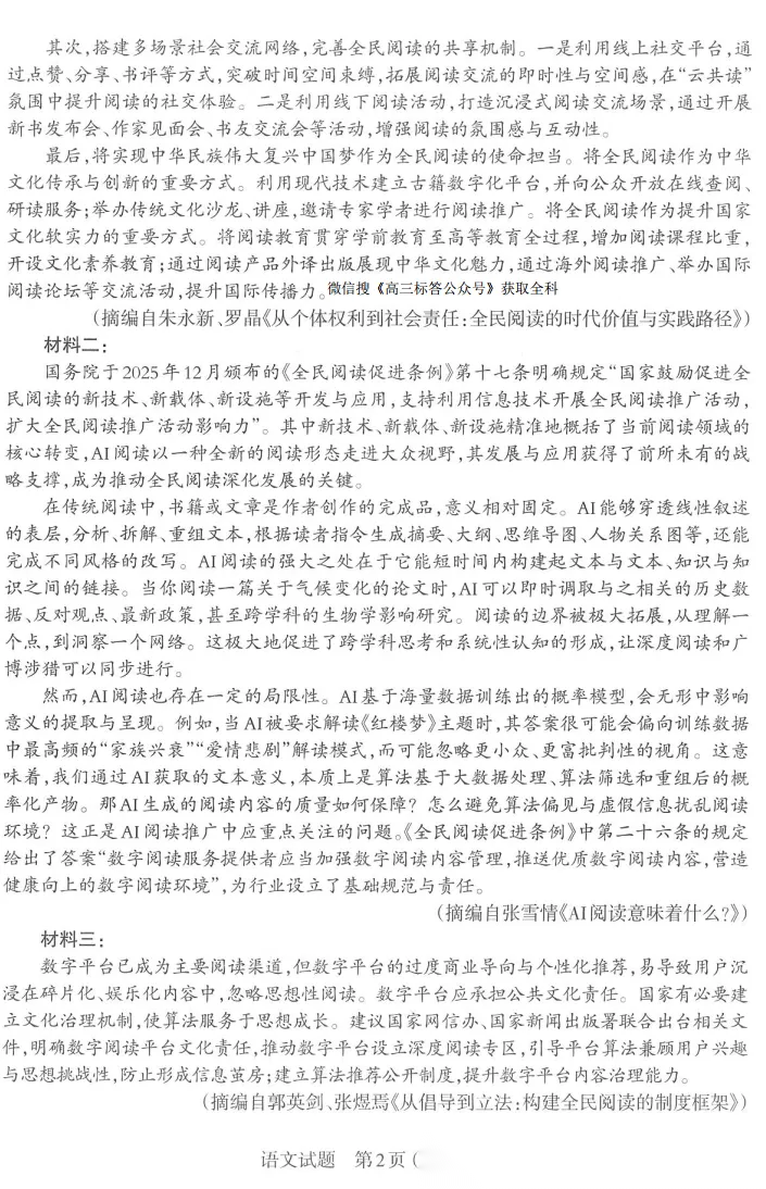 2026全国高三3月26联考答案 2026全国高三3月26联考答案