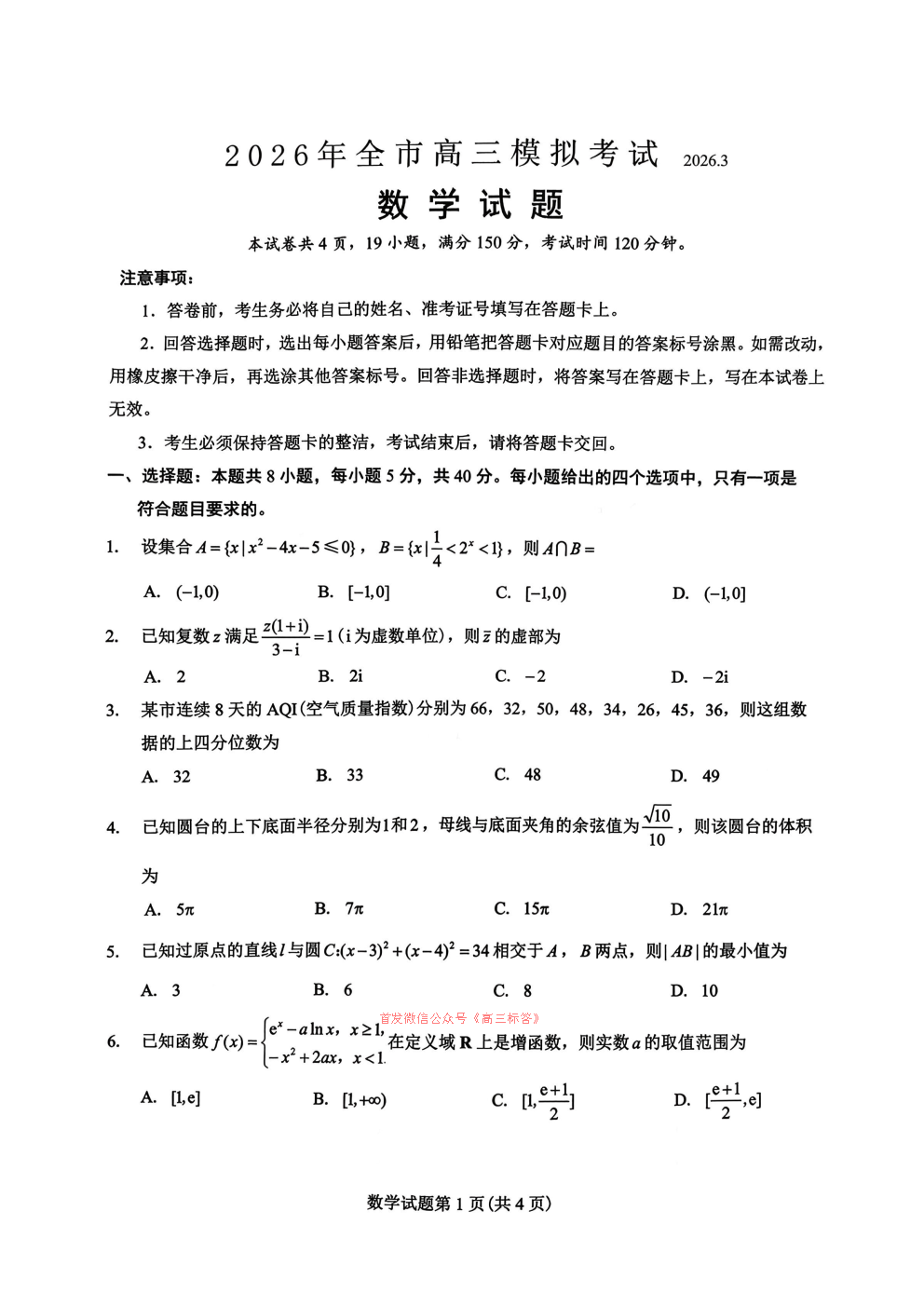 2026全国高三3月26联考答案 2026全国高三3月26联考答案