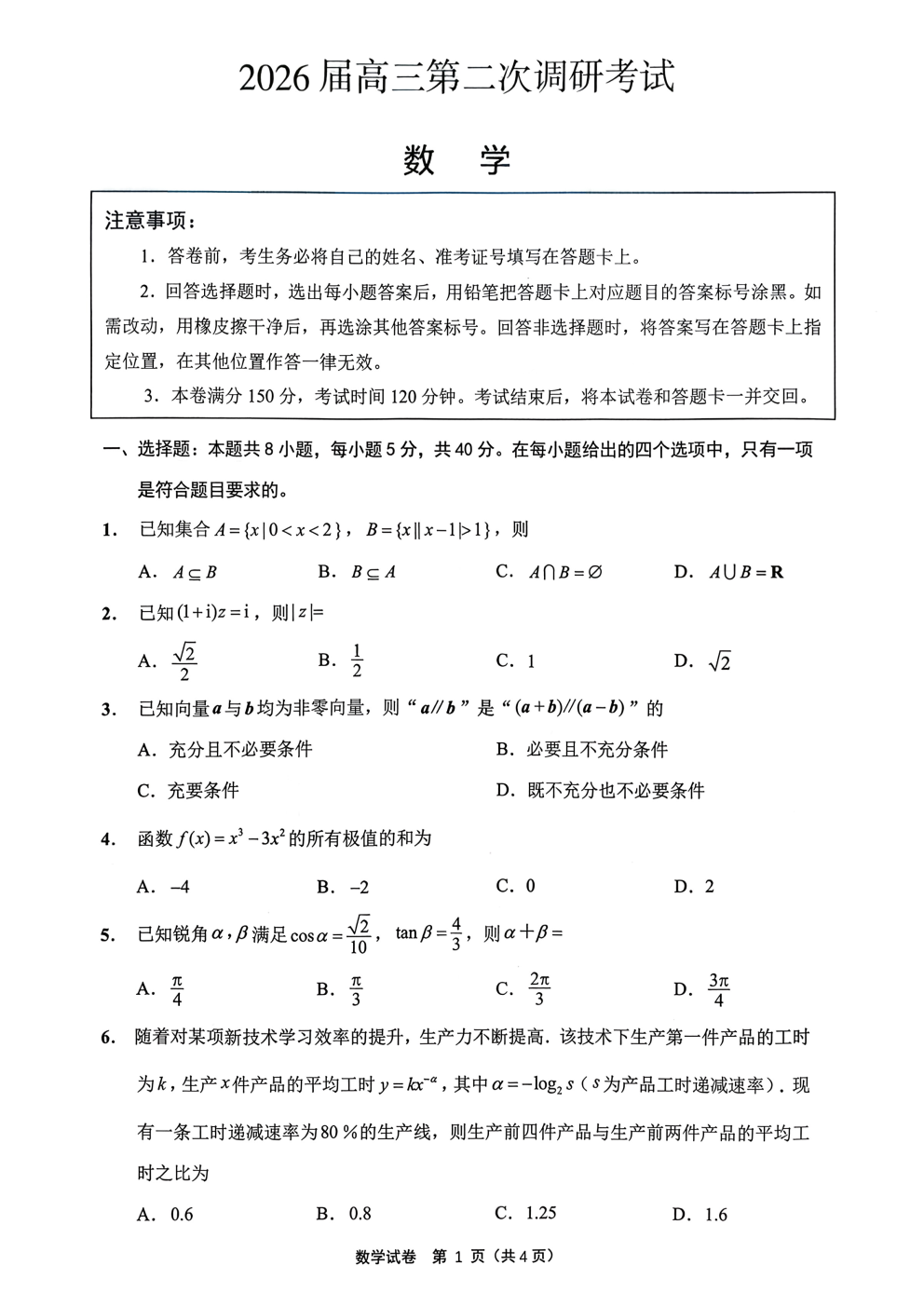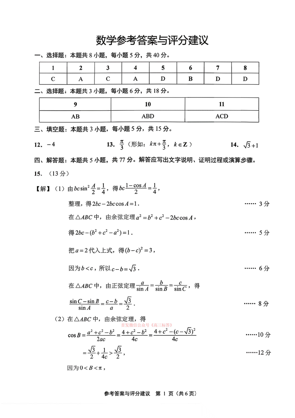 南京、盐城2026届高三年级第一次模拟考试答案 南京、盐城2026届高三年级第一次模拟考试答案
