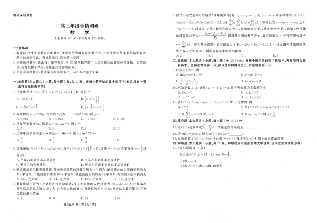 河南省开封高级中学2026届高三下学期学情调研(一) 河南省开封高级中学2026届高三下学期学情调研(一)