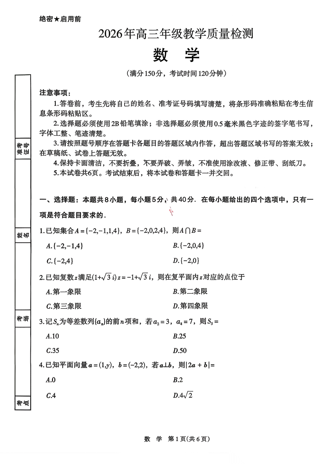 【全科】宁夏自治区银川、石嘴山、吴忠等市2026届高三教学质量检测(一模)