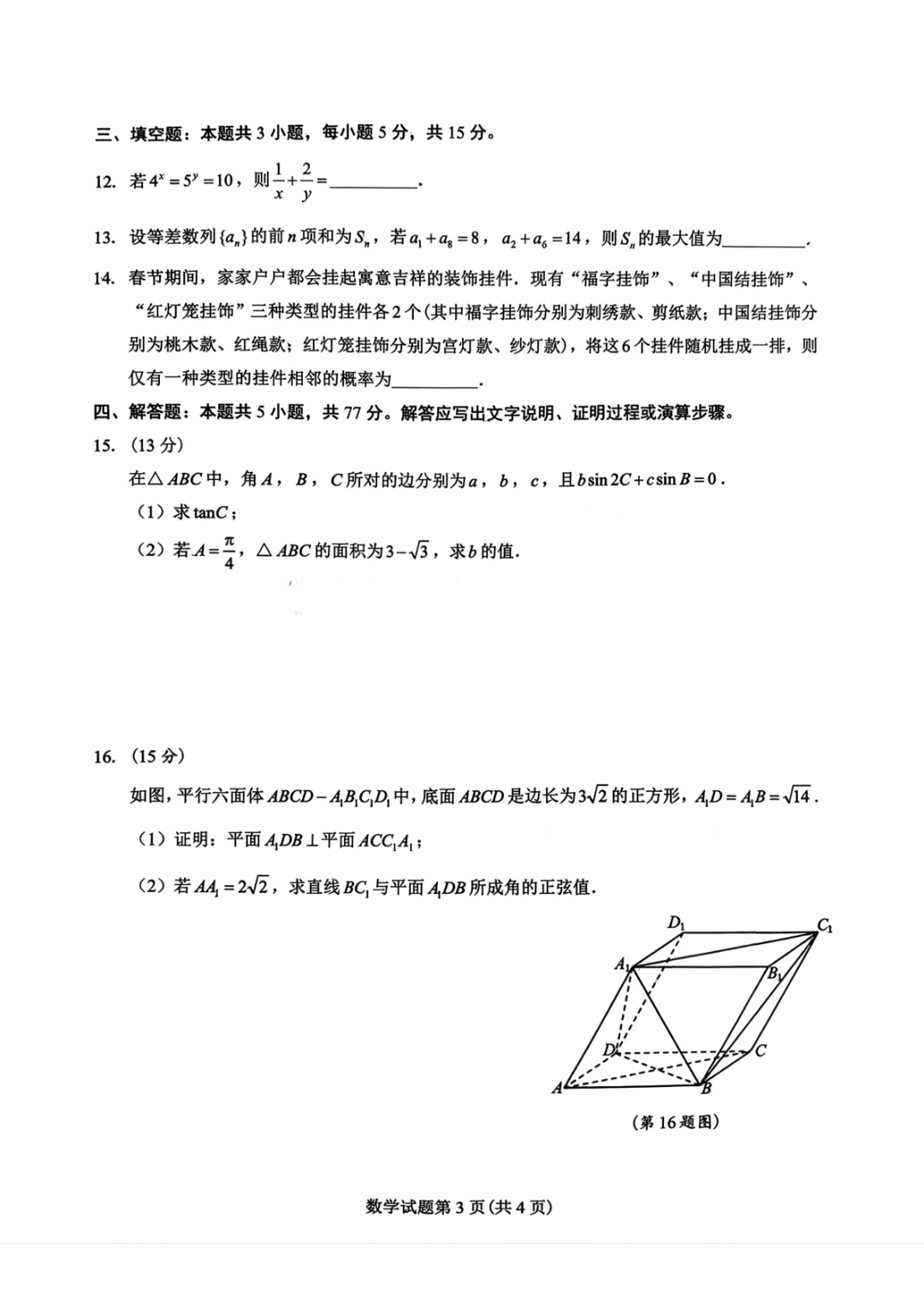 北京市延庆区2026届高三下学期3月一模考试 北京市延庆区2026届高三下学期3月一模考试
