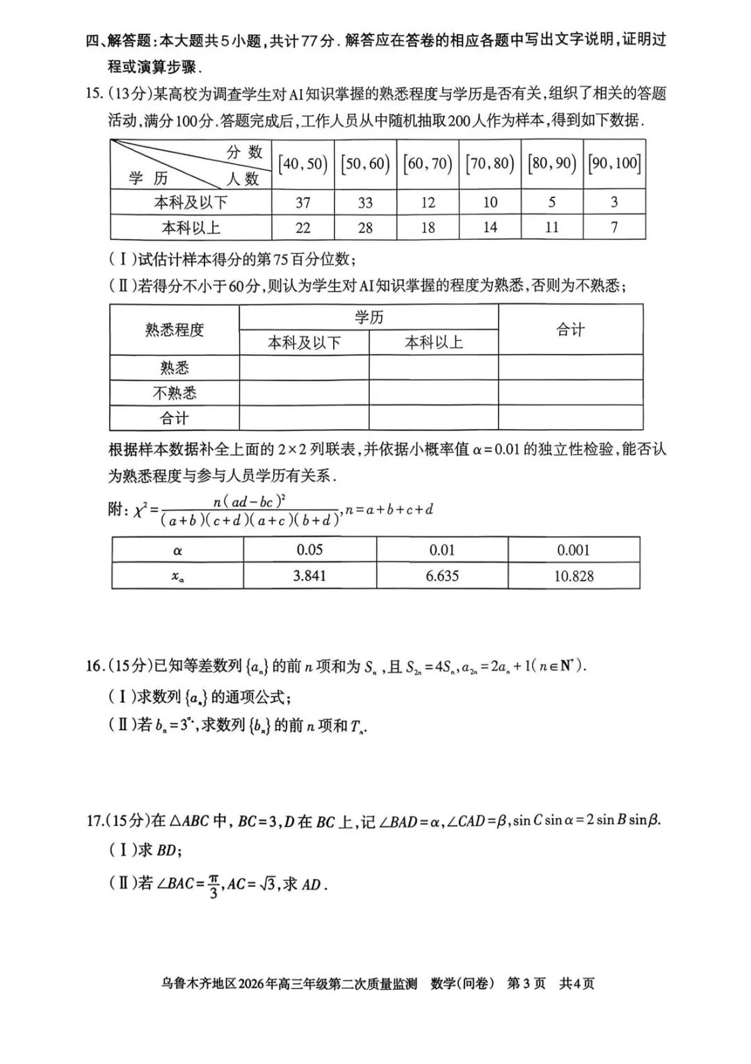 【乌鲁木齐二模全科】乌鲁木齐地区2026年高三年级第二次质量监测 【乌鲁木齐二模全科】乌鲁木齐地区2026年高三年级第二次质量监测