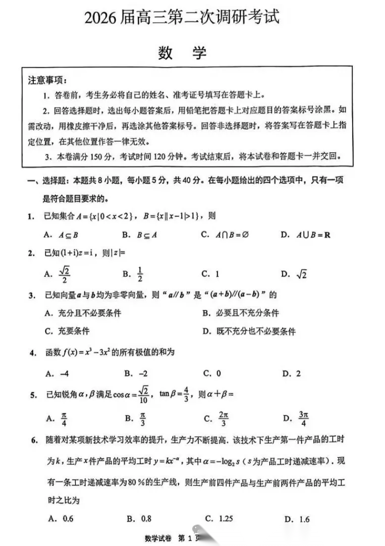 【苏北七市二模】2026年江苏苏北七市高三第二次调研试卷及答案汇总 【苏北七市二模】2026年江苏苏北七市高三第二次调研试卷及答案汇总