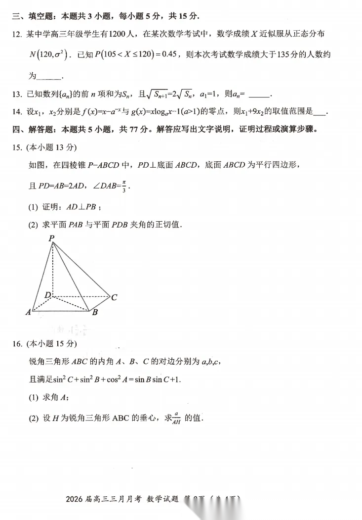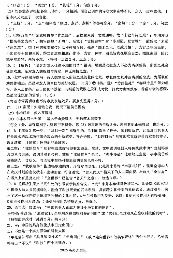 【江西卷】江西省安市2026年全市高三年级下学期模拟考试(吉安一模)(3.25-3.26) 全科试题卷+答案 【江西卷】江西省安市2026年全市高三年级下学期模拟考试(吉安一模)(3.25-3.26) 全科试题卷+答案