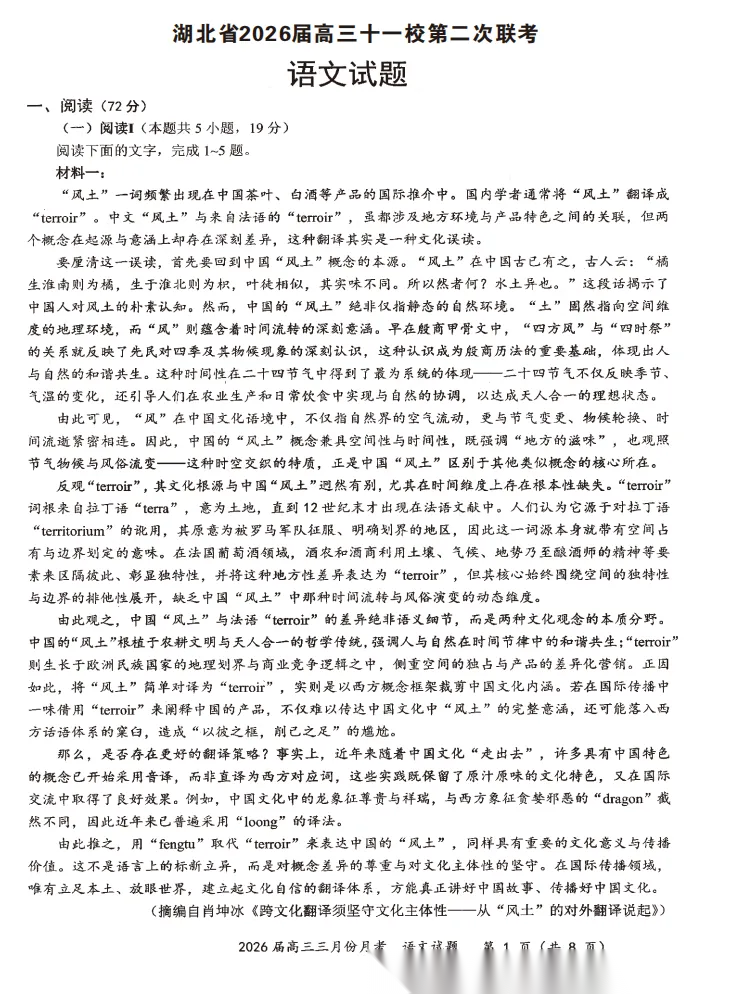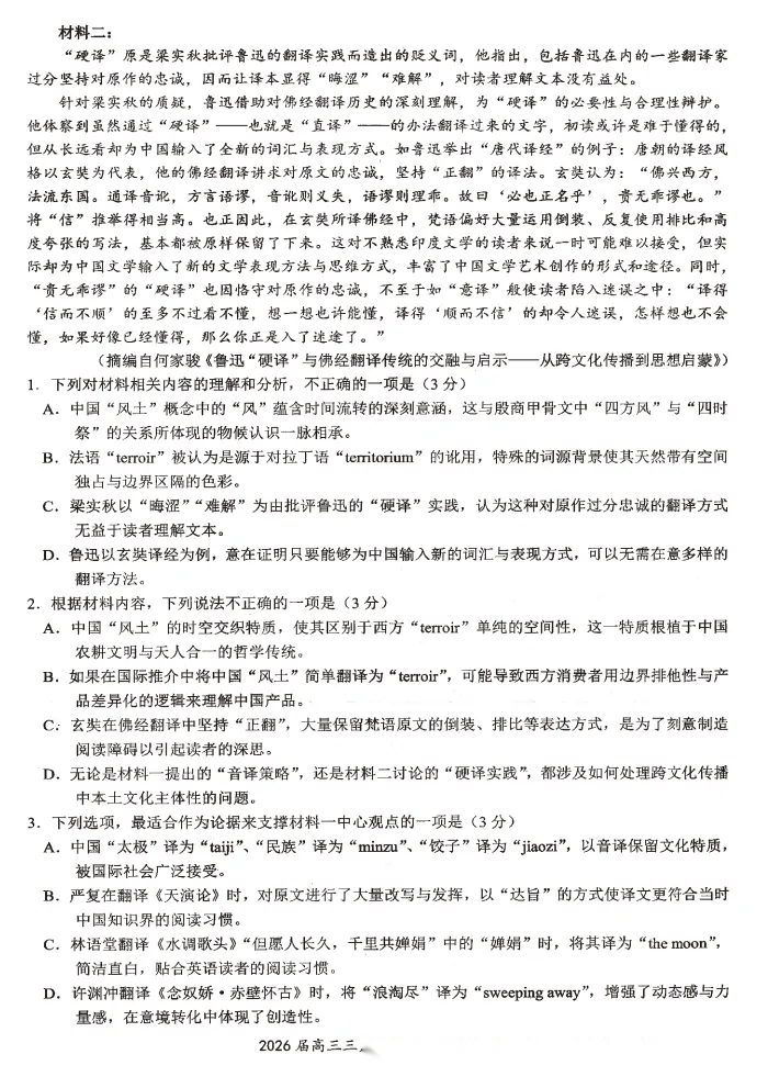 【多考区卷】【百师联盟卷】百师联盟2026 届高三年级二轮复习联考(一)(百师一模)(3.25-3.26) 全科试题卷+答案 【多考区卷】【百师联盟卷】百师联盟2026 届高三年级二轮复习联考(一)(百师一模)(3.25-3.26) 全科试...