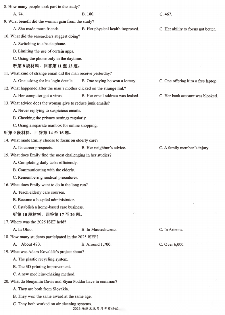 【江苏卷】江苏省苏北南通、徐州、扬州、连云港、淮安泰州宿迁七市2026届高三第二次调研考试(3.25-3.27)数学物理英语语文历史试题卷+答案 【江苏卷】江苏省苏北南通、徐州、扬州、连云港、淮安泰州宿迁七市2026届高三第二次调研考试(3.25-3.27)数学物理...