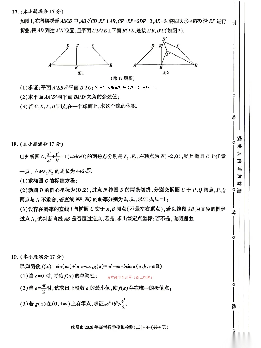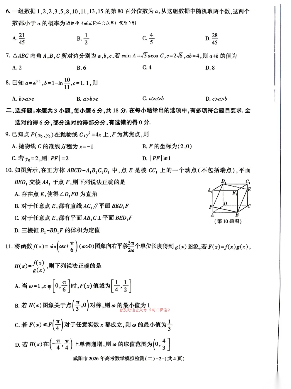 【咸阳二模】咸阳市2026年高考模拟检测二答案