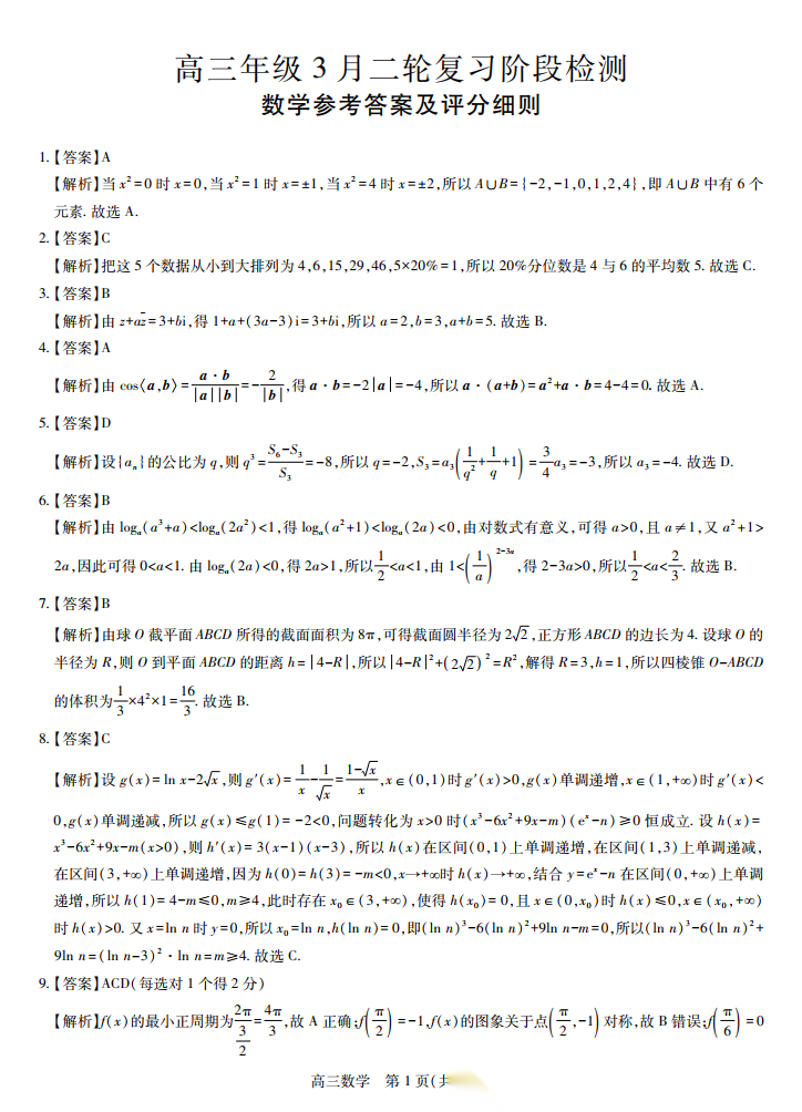 【咸阳二模】咸阳市2026年高考模拟检测二答案 【咸阳二模】咸阳市2026年高考模拟检测二答案