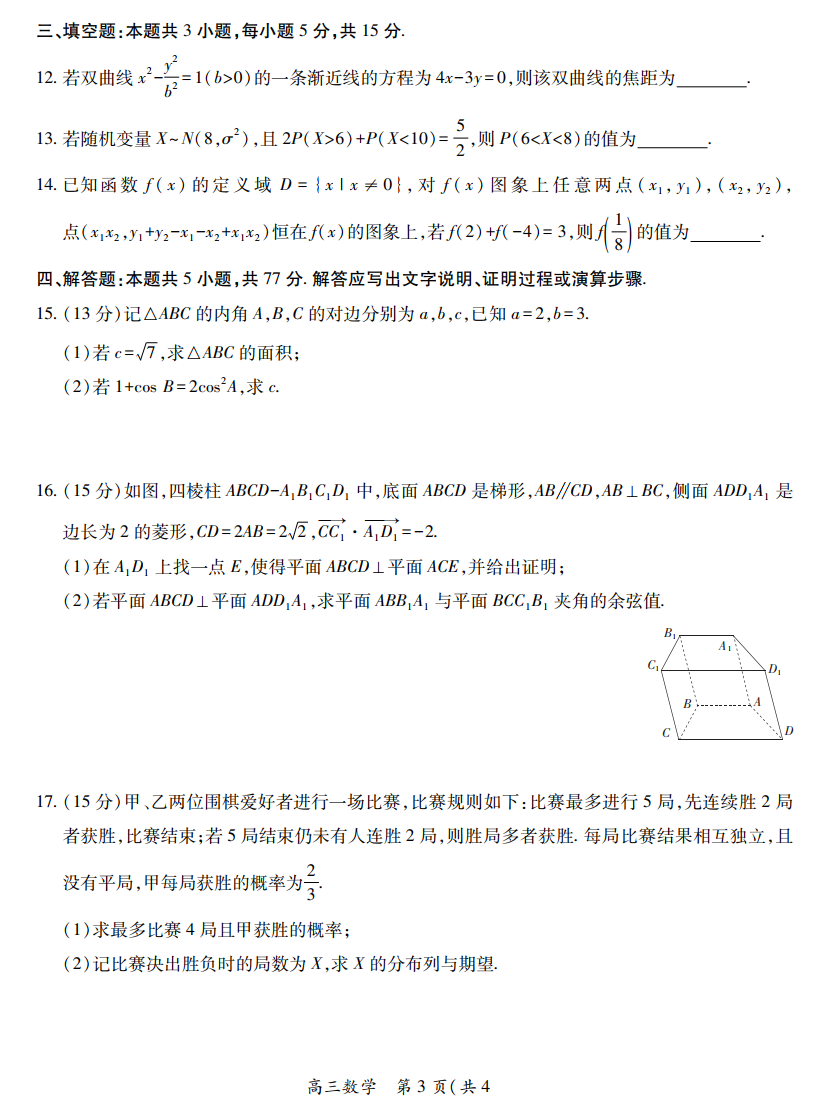 2026届江苏省南京市、盐城市高三一模 2026届江苏省南京市、盐城市高三一模