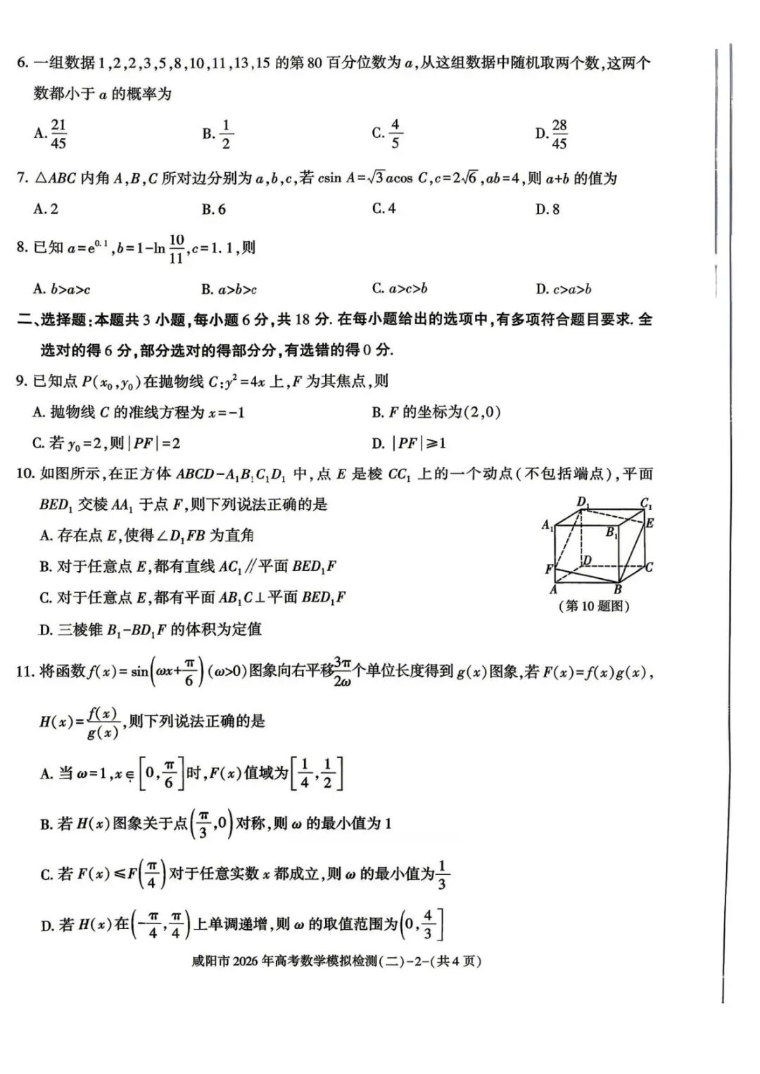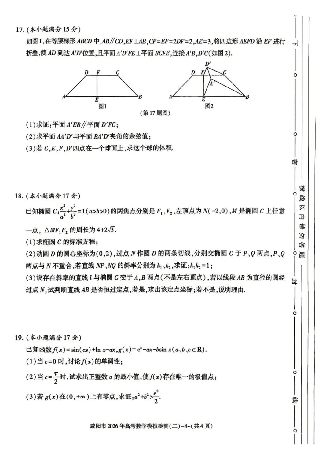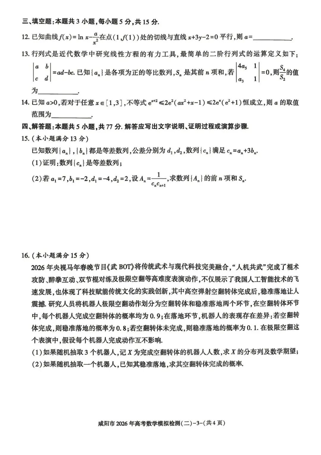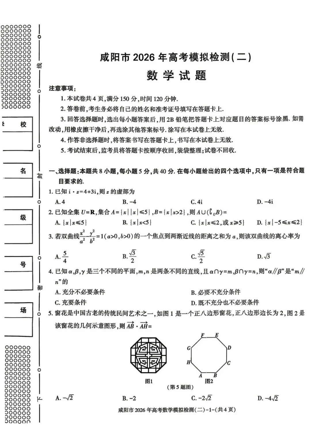 【咸阳二模】2026届陕西咸阳高考模拟检测二试卷及答案汇总