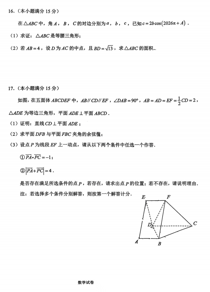【江苏卷】江苏省苏北南通、徐州、扬州、连云港、淮安、泰州、宿迁七市2026届高三第二次调研考试(苏北七市二模)(3.25-3.27)全科试卷+答案 【江苏卷】江苏省苏北南通、徐州、扬州、连云港、淮安、泰州、宿迁七市2026届高三第二次调研考试(苏北七市二模)(3.25...