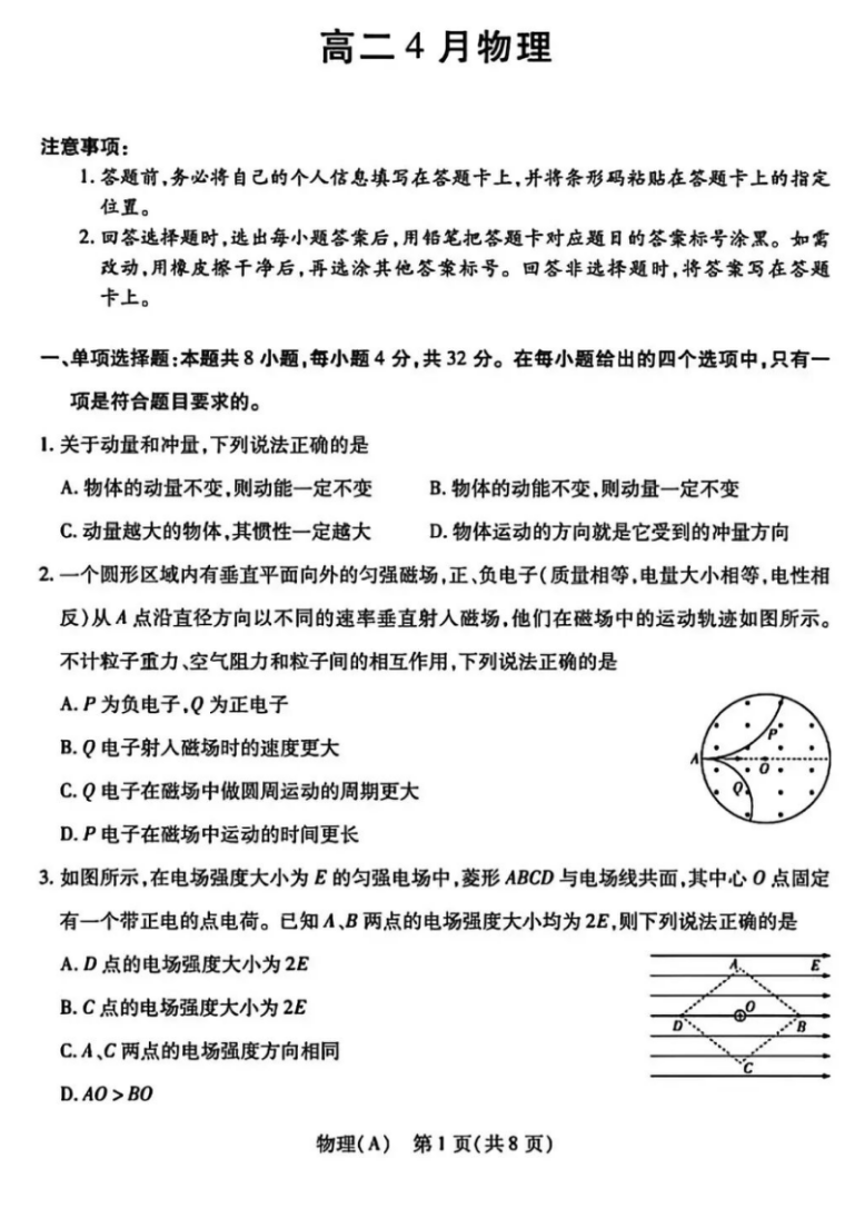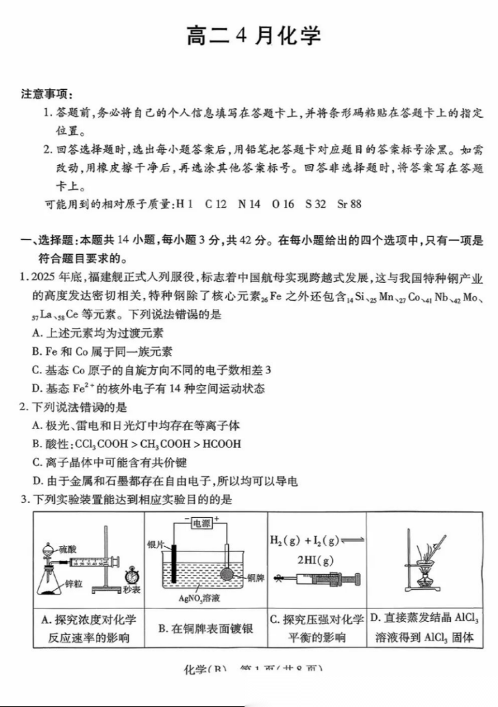 【全国第二高中】【河北卷】河北省衡水中学2025-2026学年高三年级下学期综合素质评价三(3月底) 全科试题卷(无史地)+答案 【全国第二高中】【河北卷】河北省衡水中学2025-2026学年高三年级下学期综合素质评价三(3月底) 全科试题卷(...