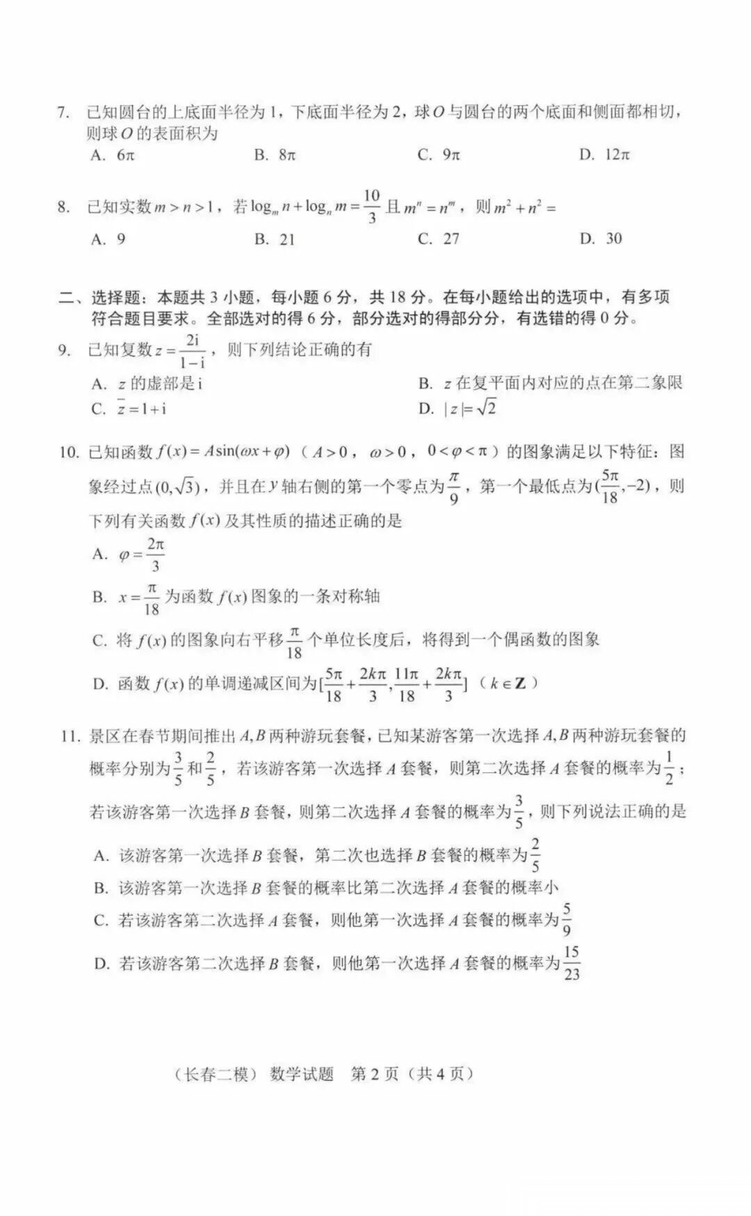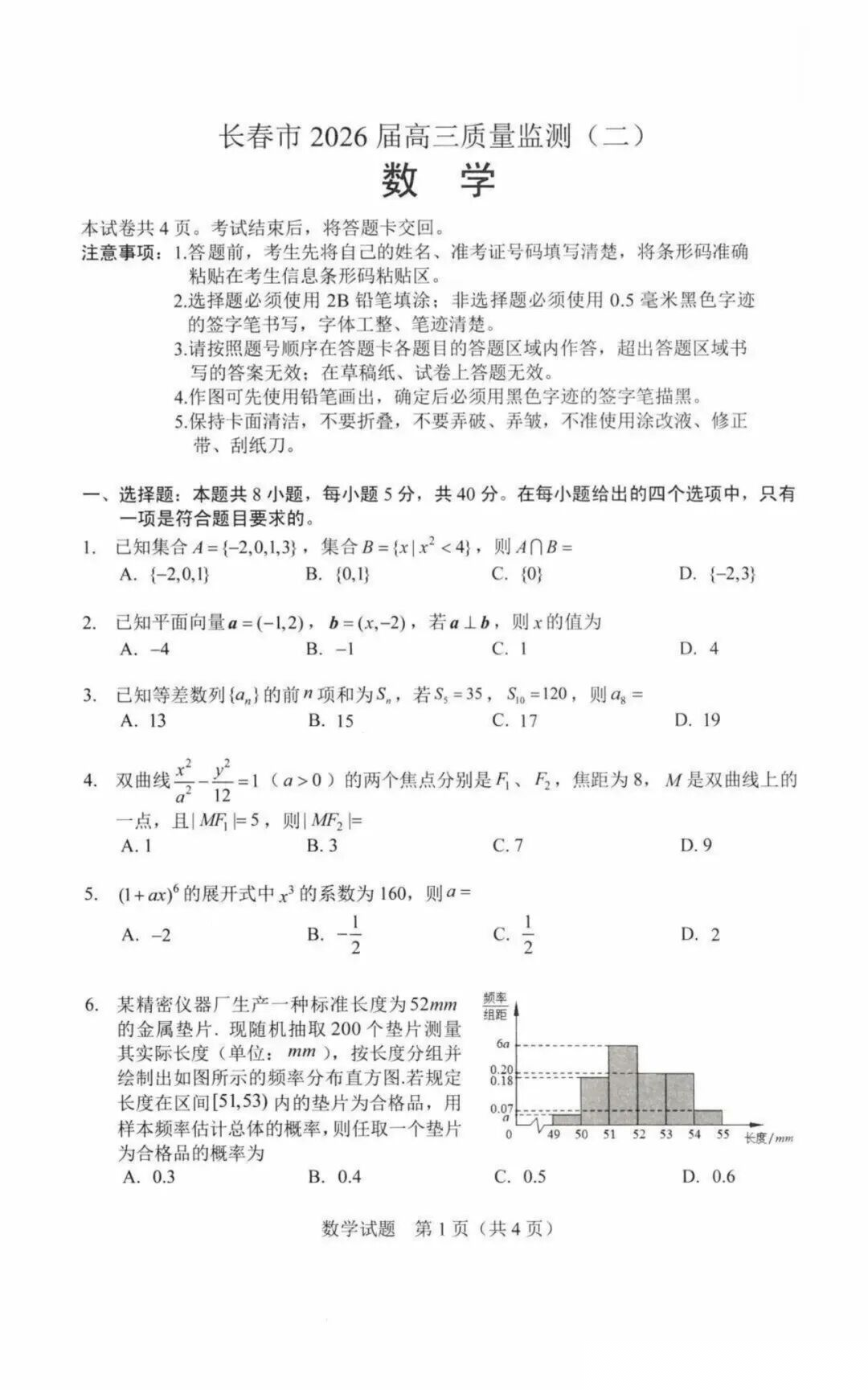 吉林省长春市2026届高三质量监测(二)