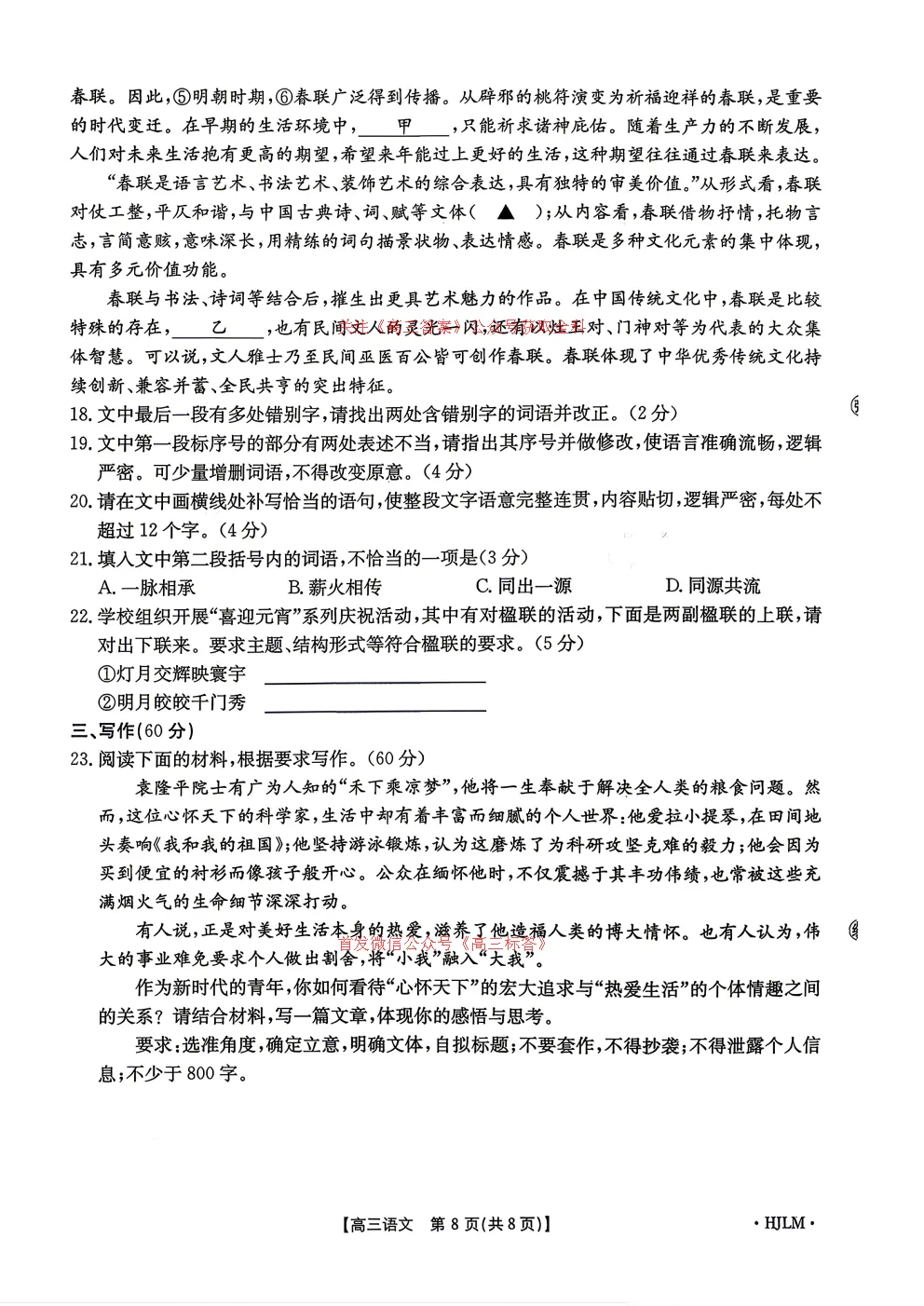 2026届八省八校T8联考高三4月联合测评语数物理历史答案 2026届八省八校T8联考高三4月联合测评语数物理历史答案