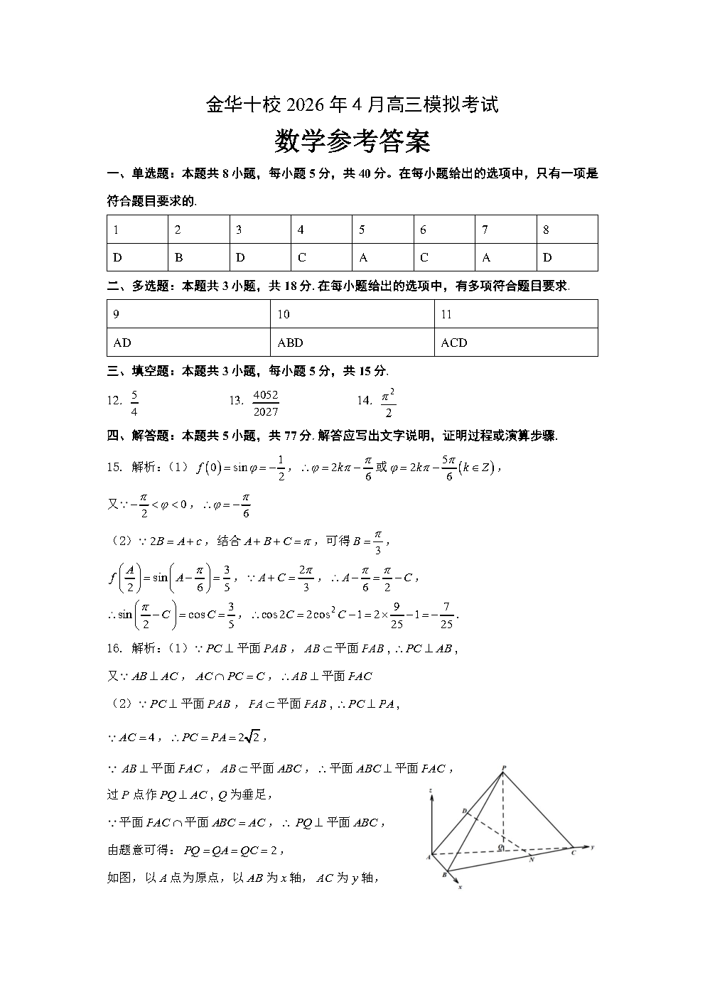 【长春二模】长春市2026届高三质量监测二语数英物理历史答案 【长春二模】长春市2026届高三质量监测二语数英物理历史答案