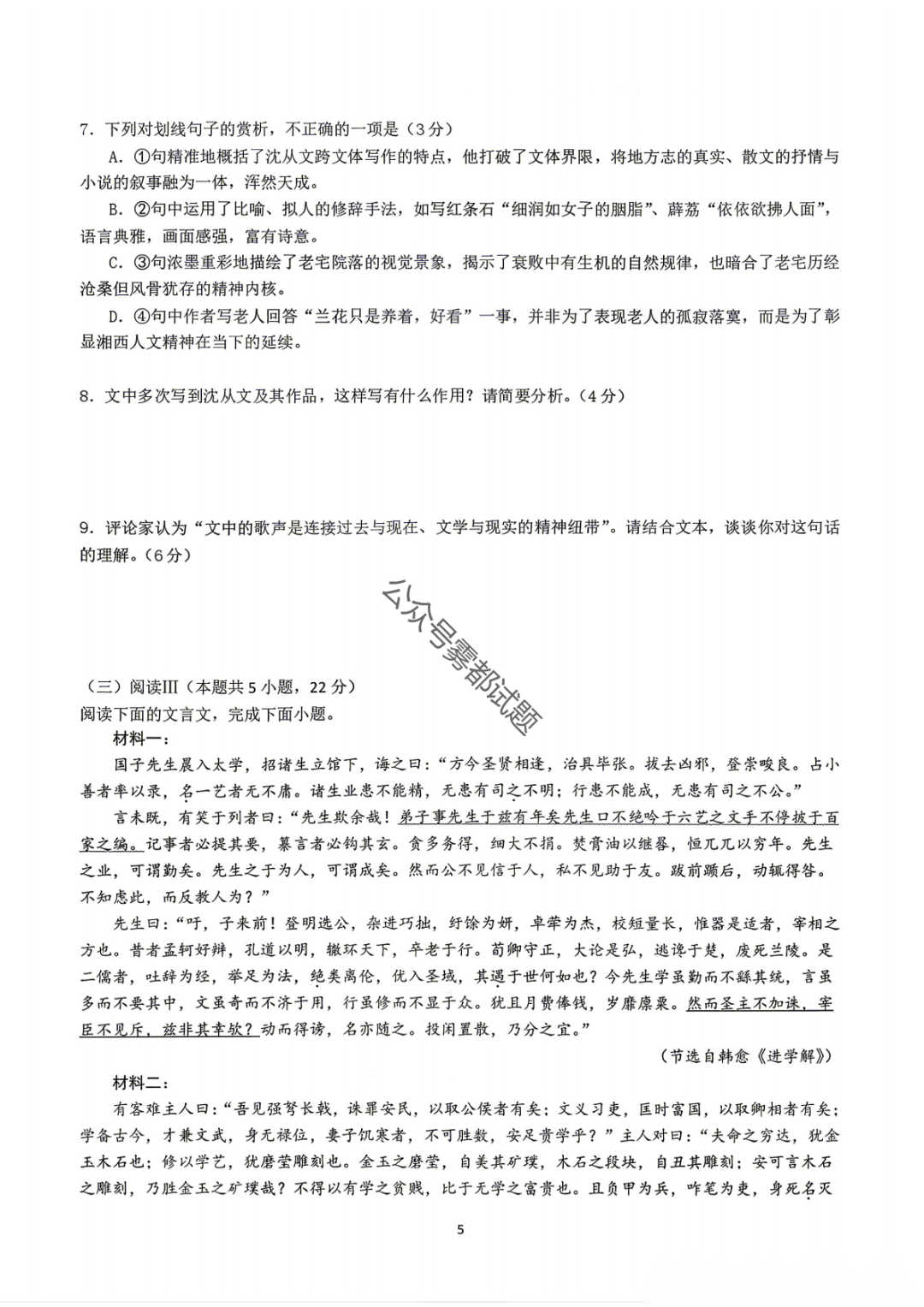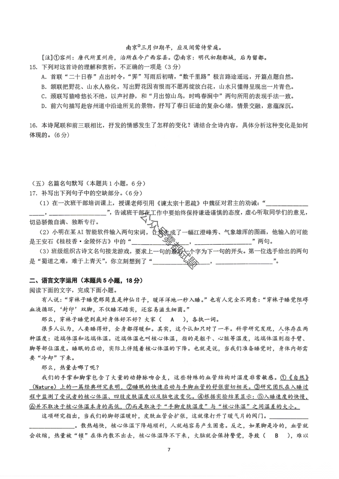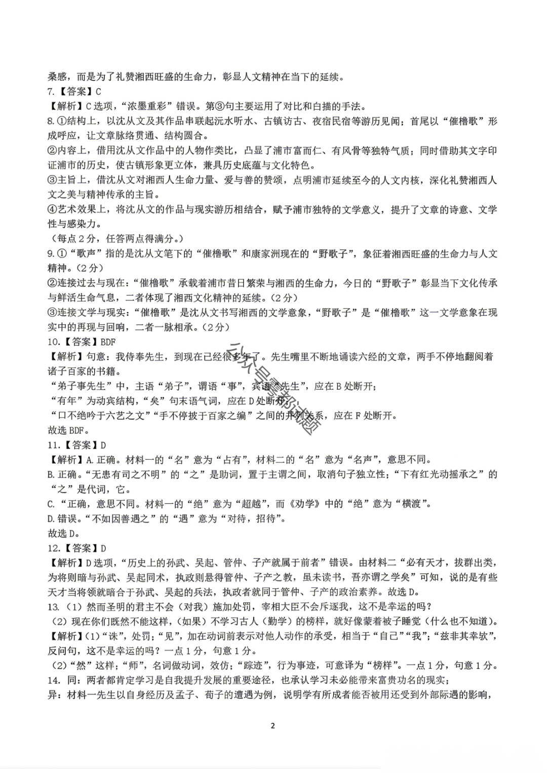 【宁波二模】宁波市2025学年高考模拟考试答案 【宁波二模】宁波市2025学年高考模拟考试答案
